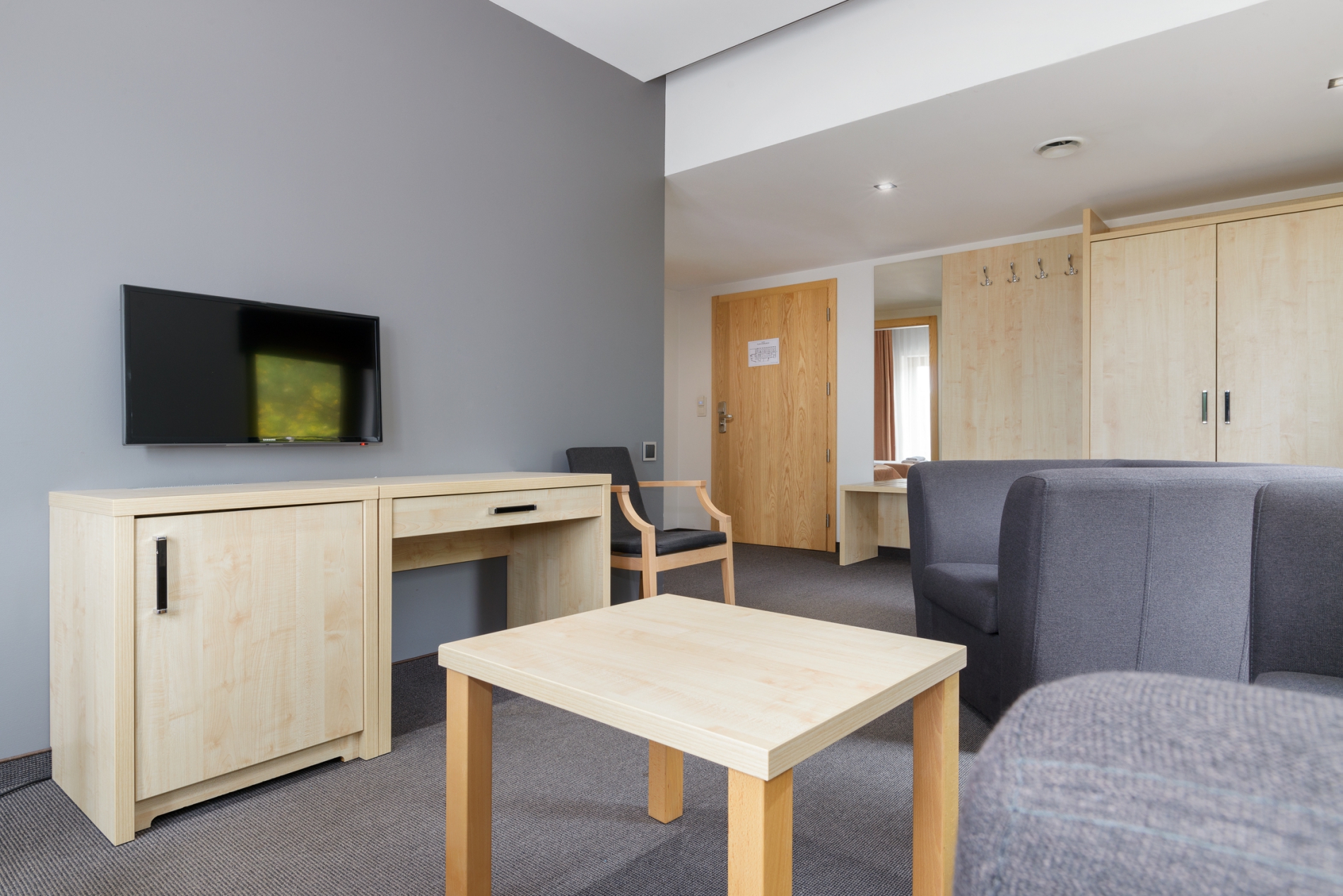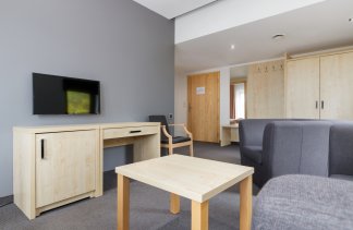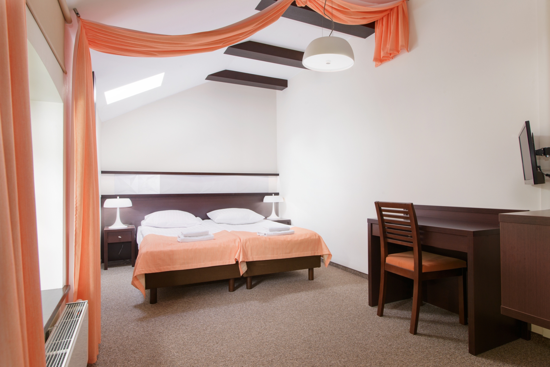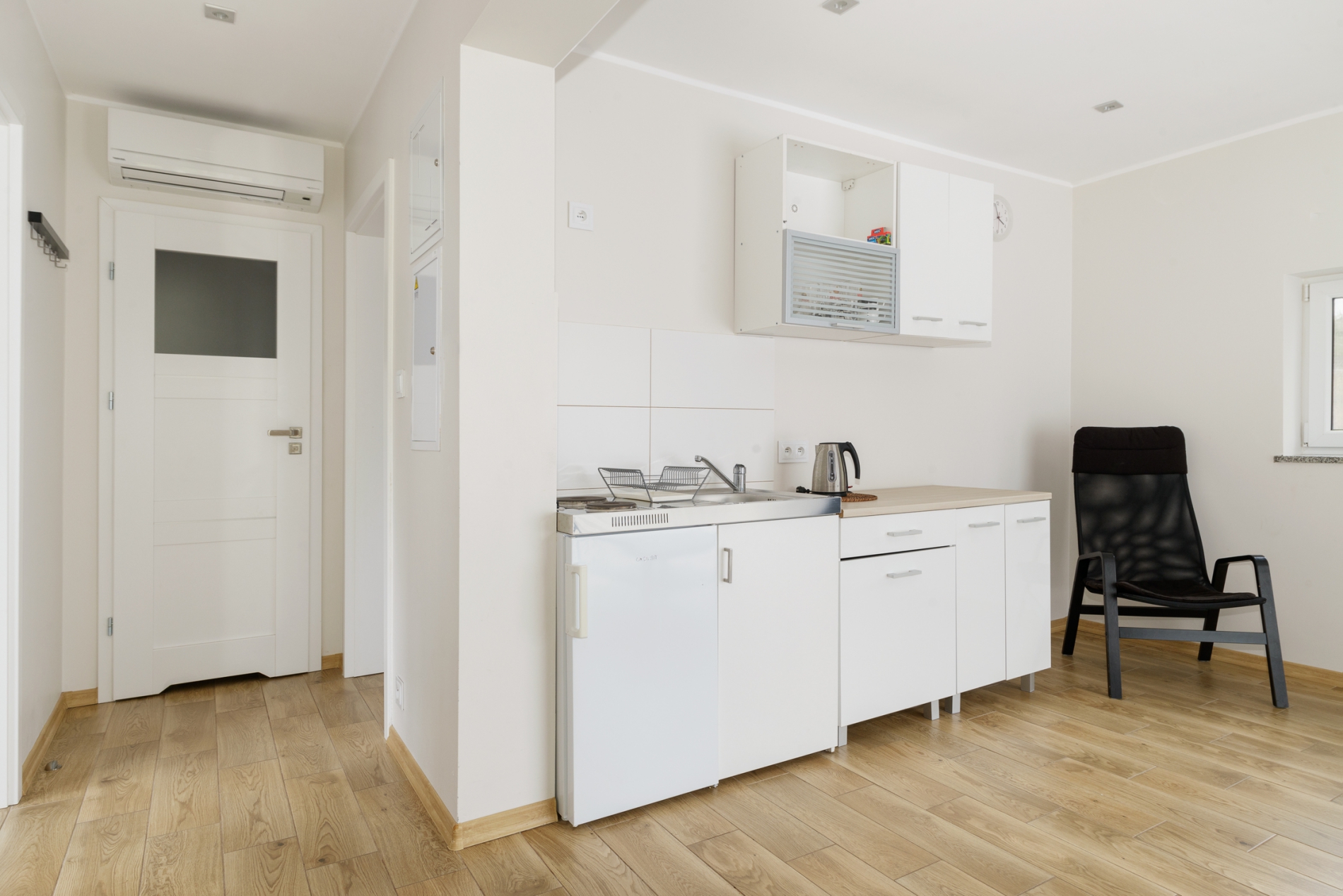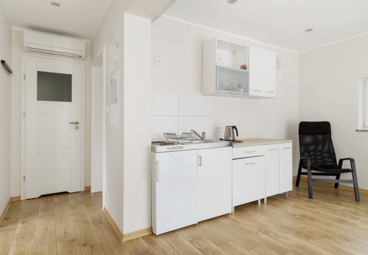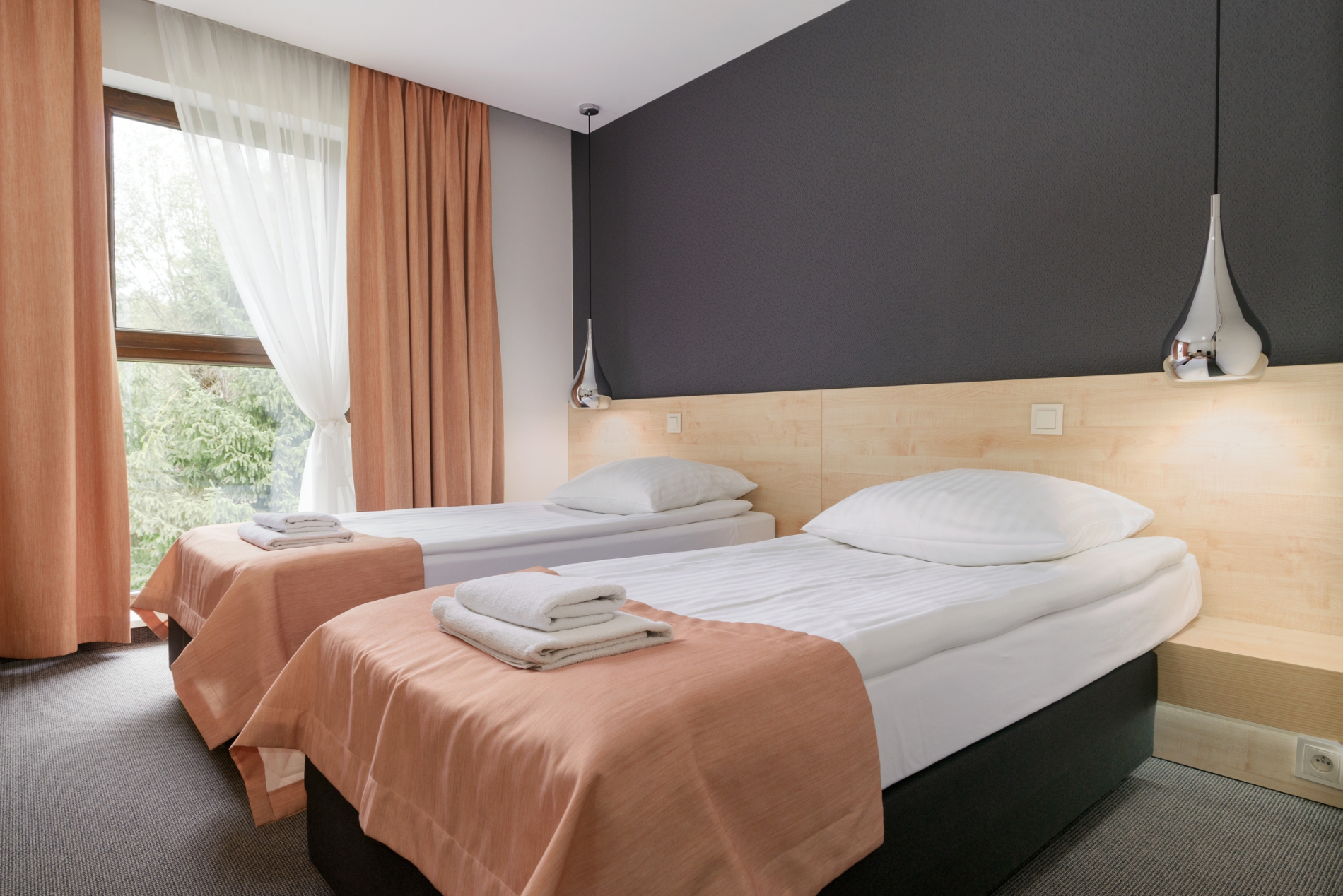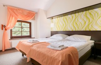 Do dyspozycji gości oddano 20 przestronnych pokoi dwuosobowych z prywatnymi łazienkami, z czego dwa przystosowane są do potrzeb osób z niepełnosprawnościami. Ponadto obiekt oferuje cztery komfortowe apartamenty dwupokojowe, składające się z sypialni, pokoju dziennego z rozkładaną sofą i telewizorem oraz łazienki – idealne rozwiązanie dla rodzin z dziećmi lub gości ceniących sobie dodatkową przestrzeń.