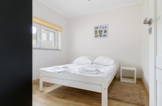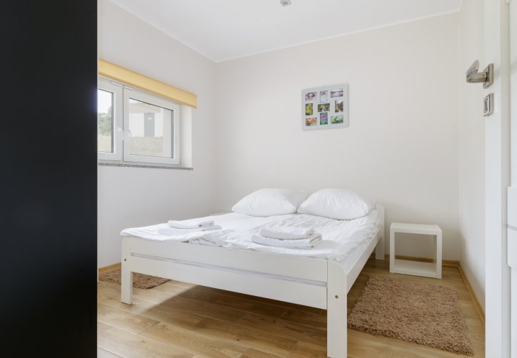 - Białe domki – nowoczesne, klimatyzowane domki całoroczne, każdy z dwiema sypialniami dwuosobowymi, przestronnym salonem z aneksem kuchennym oraz tarasem, który umożliwia relaks z widokiem na otaczającą przyrodę.