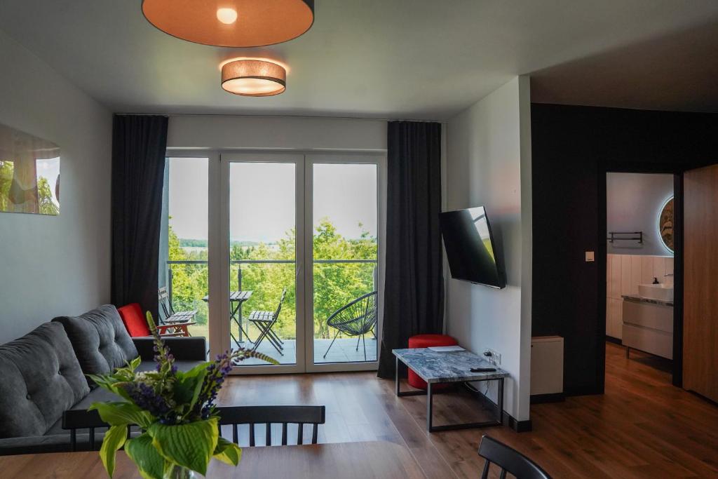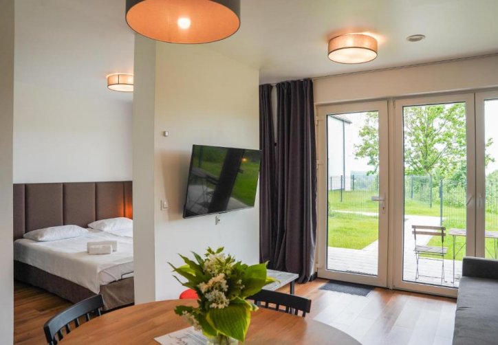 Kompleks oferuje nowoczesne apartamenty wakacyjne o wysokim standardzie, które łączą funkcjonalność z domową atmosferą. Każdy apartament zapewnia bezpośredni dostęp do prywatnej przestrzeni na zewnątrz – w formie ogrodzonego ogródka, tarasu lub balkonu – co sprzyja relaksowi w otoczeniu natury.