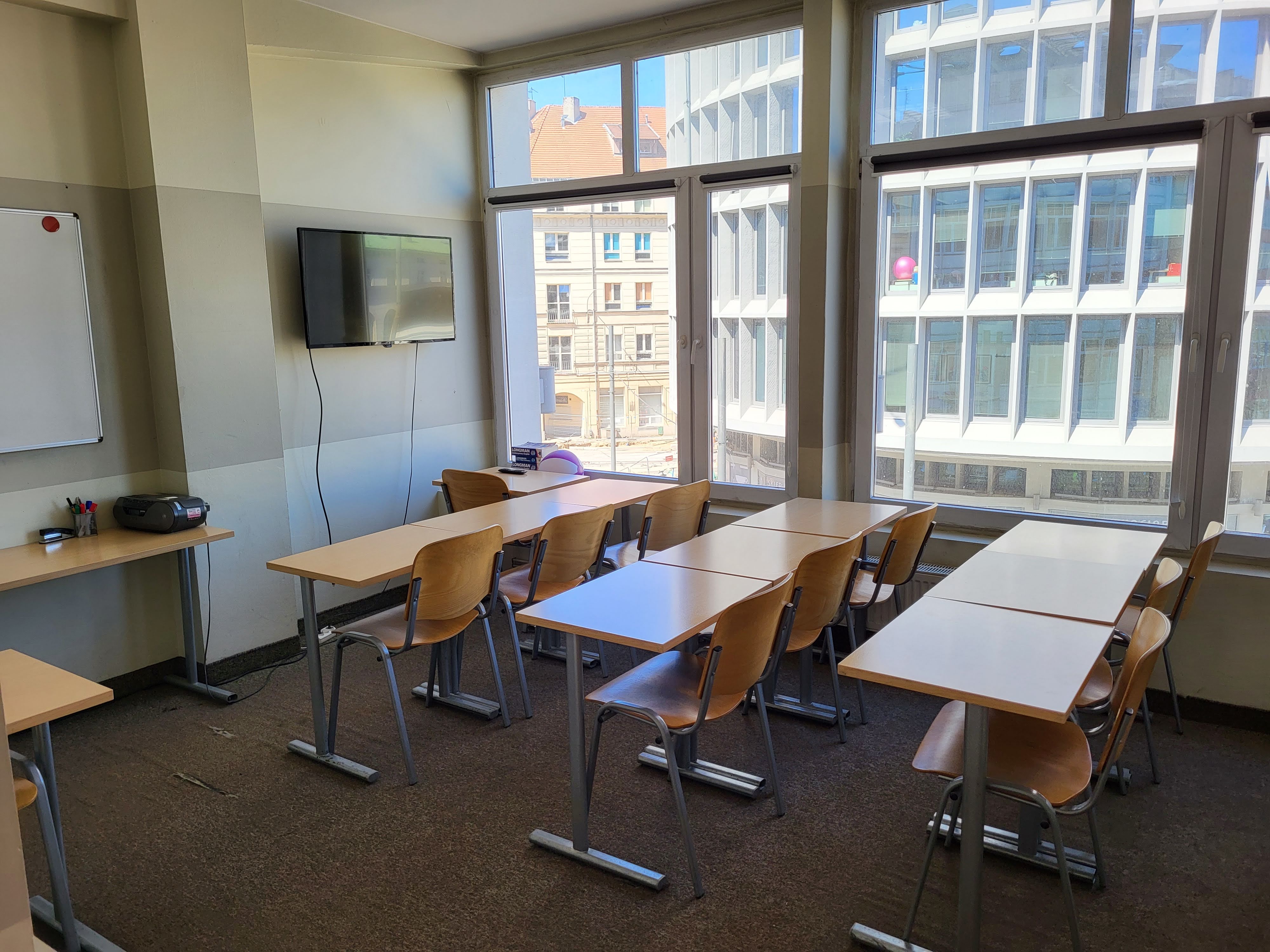 Ceny wynajmu sal w Profilingua Poznań zależą od wielu czynników, takich jak metraż sali, czas trwania wynajmu oraz liczba osób.