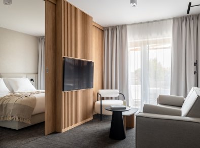 Hotel posiada klimatyzowane pokoje i apartamenty oraz nowoczesną salę szkoleniową, w której można zorganizować kameralne ...