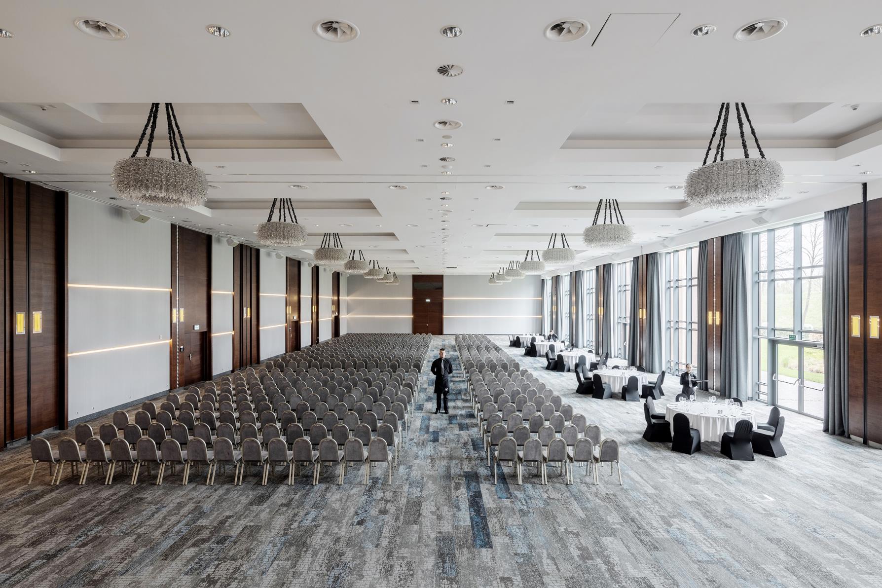 Hotel oferuje także najwyższej jakości sprzęt audiowizualny, specjalną rampę, po której można wprowadzić do środka nawet samochód i szereg innych udogodnień umożliwiających organizację różnorodnych targów, szkoleń, bankietów, eventów, kongresów, konferencji oraz imprez okolicznościowych. Doświadczony personel pomoże zaplanować każde wydarzenie i zadba o jego sprawną realizację.
