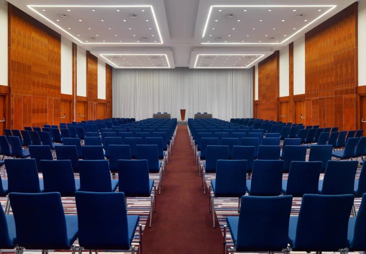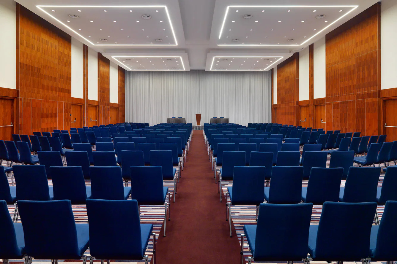 Hotel dysponuje 14 salami konferencyjnymi o łącznej powierzchni ponad 3 000 metrów kwadratowych. Na miejscu widać, że przestrzeń jest elastyczna i dobrze zaprojektowana pod eventy - wysokie sufity, dostęp do światła dziennego i bezpośrednie wyjście do foyer robią świetne wrażenie. To miejsce, które udźwignie zarówno kameralne spotkanie zarządu, jak i duży event branżowy.