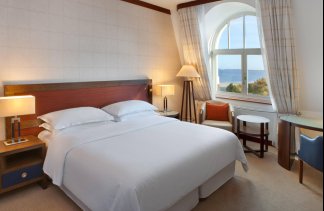 Hotel oferuje 189 pokoi i apartamentów. Pokoje są przestronne, a łóżka - zgodnie ze standardem sieci Sheraton - bardzo wygodne. To typ materaca, po którym rano naprawdę nie chce się wstawać. Wnętrza są utrzymane w eleganckim, stonowanym stylu, a część pokoi ma widok na morze, co robi ogromną różnicę przy porannej kawie.