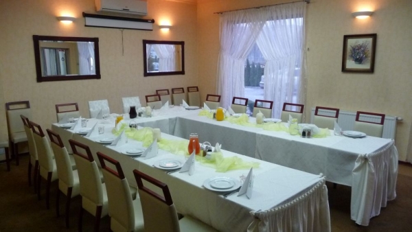 Nasz obiekt posiada 2 sale specjalnie przygotowane do organizacji szkoleń, konferencji i spotkań biznesowych. Obie te sale są kompleksowo wyposażone tzn.: projektor multimedialny, ekran, flipchart, zaciemnienie, klimatyzacja itd. Poza tym posiadamy również salę główną restauracyjną, która może posłużyć jako miejsce organizacji sympozjów naukowych, wernisaży, koncertów, bankietów i spotkań firmowych.