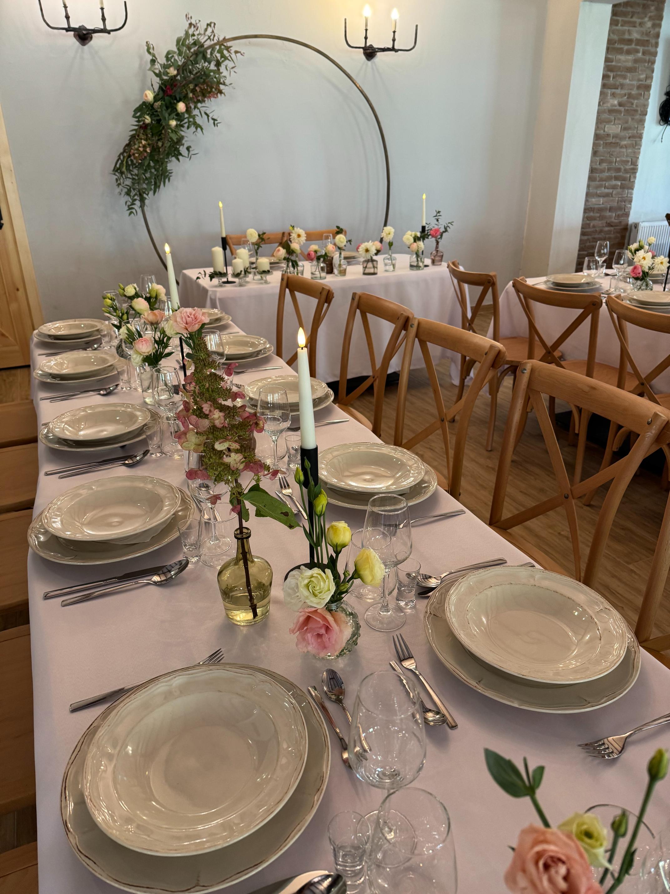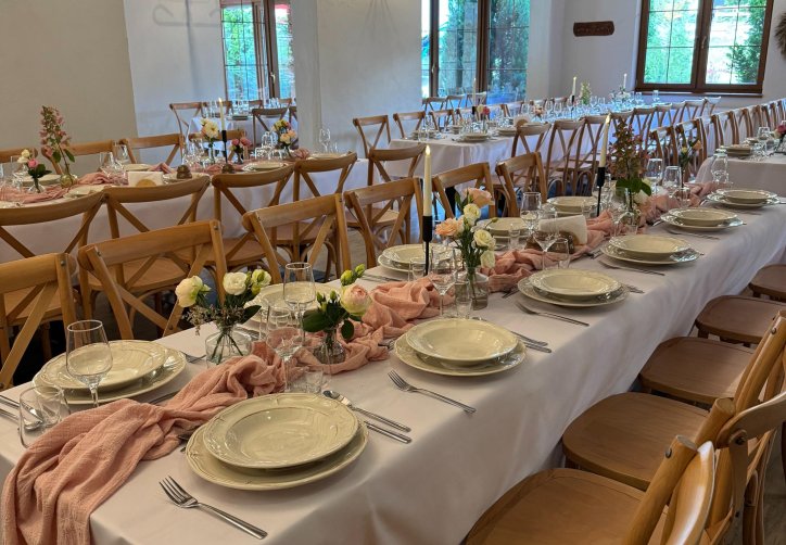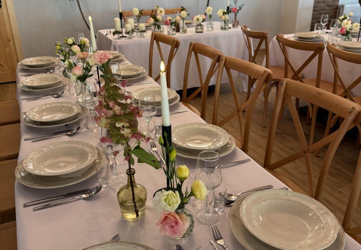 Łącznie oferujemy prawie 575 m² powierzchni. Sale: 1 do 5 oraz Kwiatowa nie mają możliwości ustawienia w podkowę, jest to jeden długi stół z krzesłami naokoło.