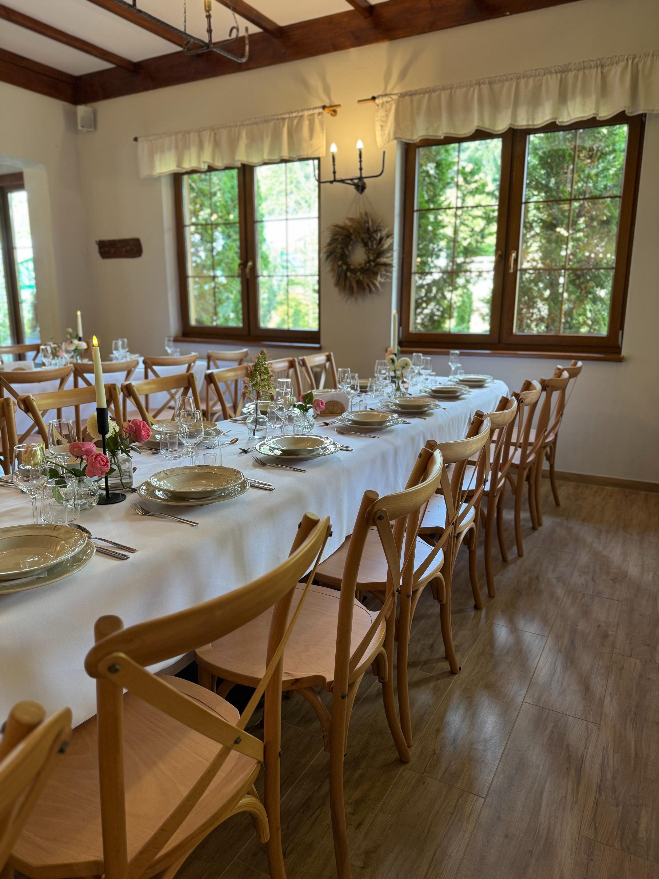 Elegancko urządzona Sala Bankietowa to idealne miejsce do świętowania ważnych dla Państwa wydarzeń i uroczystości. Sala pomieści do 200 osób.