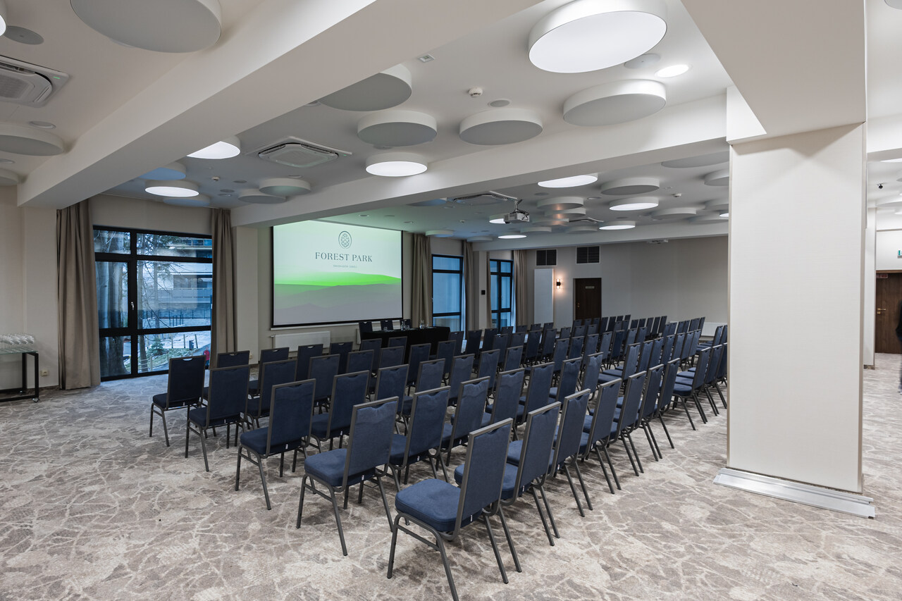 W zależności od układu, przestrzeń biznesowa Forest Park umożliwia organizację wydarzeń - w układzie teatralnym do 400 osób, w układzie koktajlowym do 500 osób, a w układzie bankietowym do 330 osób. Przestrzeń konferencyjna posiada odpowiednie zaplecze kuchenne i gastronomiczne, co umożliwia obsługę wydarzeń na dużą skalę. Sale są wyposażone w nowoczesny sprzęt AV.