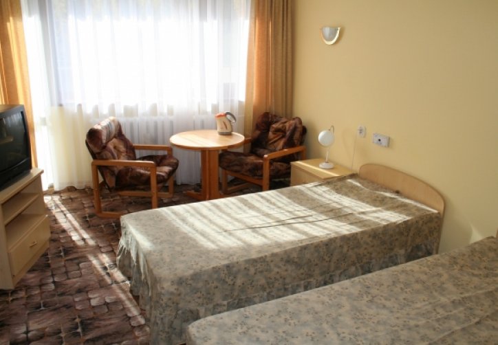 Oferujemy Państwu pokoje jedno-, dwu-, trzyosobowe, a także pokoje typu studio. Do standardu należy telewizor dostosowany do odbioru programów satelitarnych, radio, telefon, łazienka z wanną lub kabiną natryskową. Każdy pokój posiada sygnalizację alarmową, oraz osobne wyjście na taras.