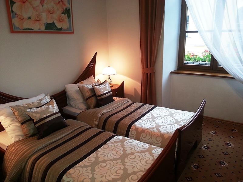Do dyspozycji naszych gości oddajemy 17 komfortowych pokoi, wśród których znajdują się pomieszczenia typu standard oraz luksusowe apartamenty królewskie. Wszystkie pokoje są jedno- lub dwuosobowe i wyposażone są w osobne łazienki, TV, telefon oraz internet. W cenę noclegu wliczone jest śniadanie i możliwość korzystania ze strzeżonego parkingu.