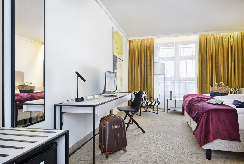 Wnętrza zostały zaprojektowane w eleganckim stylu, w kolorystyce żółci i szarości, z myślą o komforcie i zadowoleniu gości, nawet tych najbardziej wymagających.