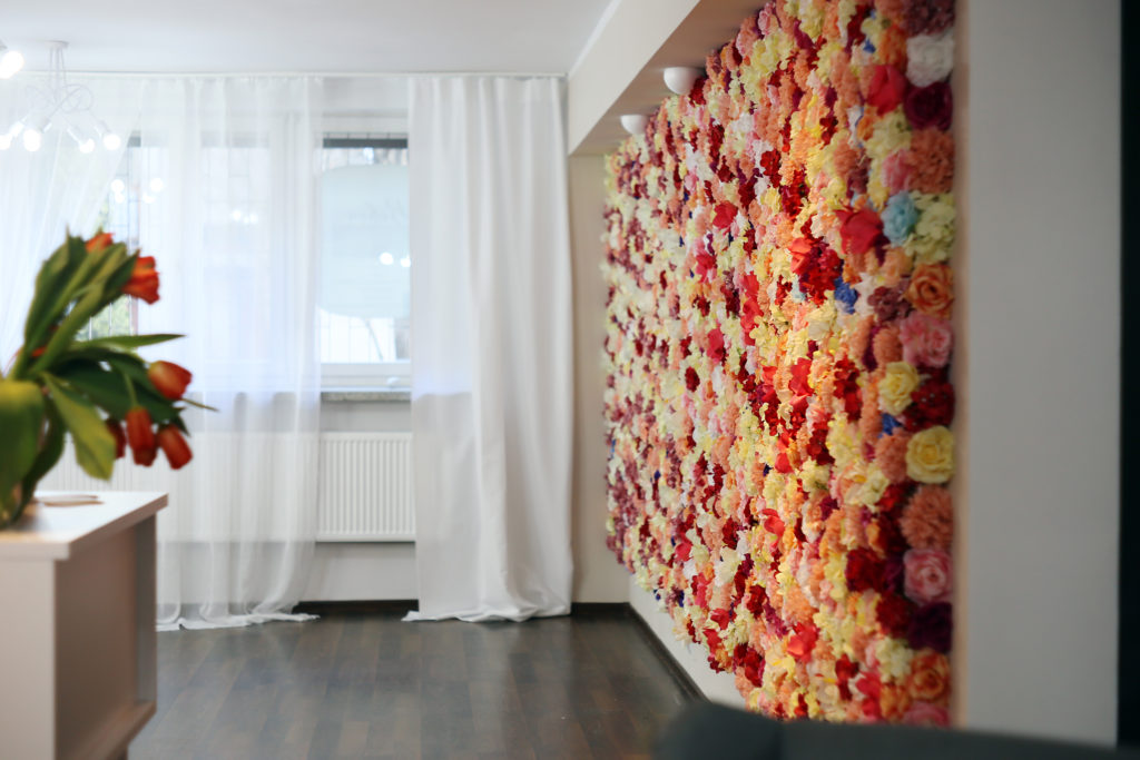Minimalistyczny charakter salonu oraz jasne tonacje dominujące we wnętrzu tworzą atmosferę sprzyjającą koncentracji i skupieniu podczas spotkań biznesowych. Dodatkowo, urokliwa kwiatowa ściana stanowi idealne tło dla pamiątkowych zdjęć z konferencji czy spotkań, dodając wyjątkowego charakteru wydarzeniom.
