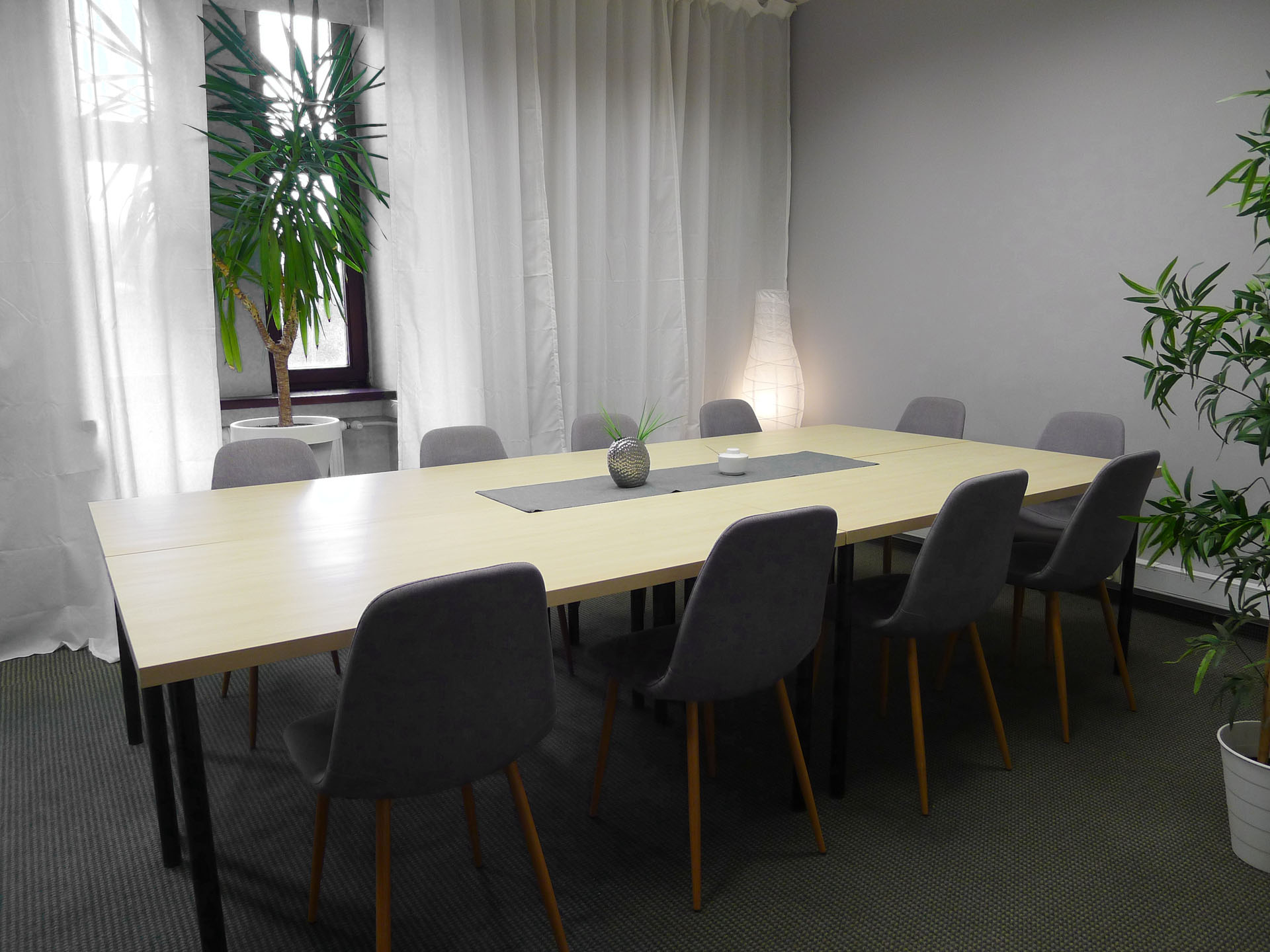 Dwie większe Sale Konferencyjne są standardowo urządzone na 8-10 osób i rekomendowane są do zebrania zarządu, negocjacji biznesowych, prezentacji, rekrutacji oraz niewielkich szkoleń. Cena wynajmu wynosi 50 zł netto za godzinę, minimalna opłata to 100 zł.