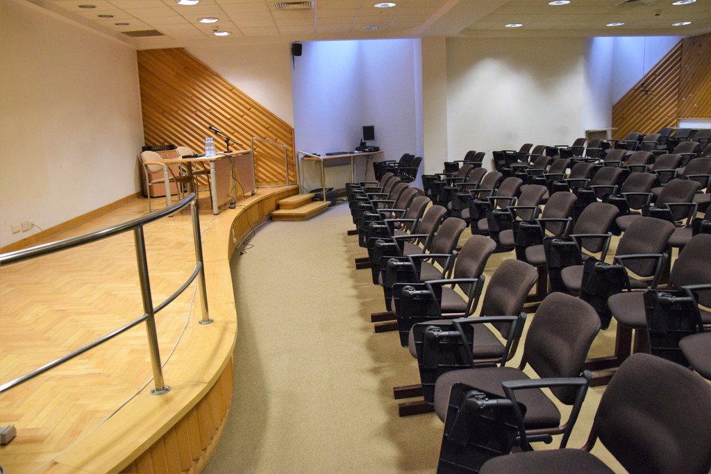- Salę wykładową - z fotelem i pulpitem do notowania, nagłośnieniem, rzutnikiem, Wi-Fi, klimatyzacją, oraz możliwością transmisji i nagrywania wykładów.