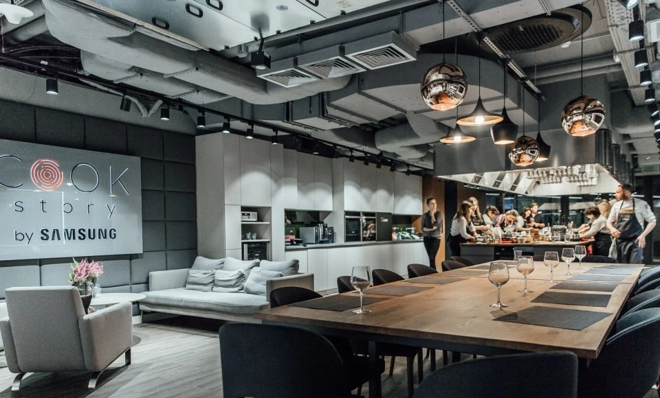 Zarówno elegancka architektura, przestronne wnętrza, jak i wszechstronne możliwości organizacyjne sprawiają, że Cook Story by Samsung jest idealnym miejscem do przeprowadzenia różnorodnych wydarzeń, zarówno biznesowych, jak i kulinarnych.