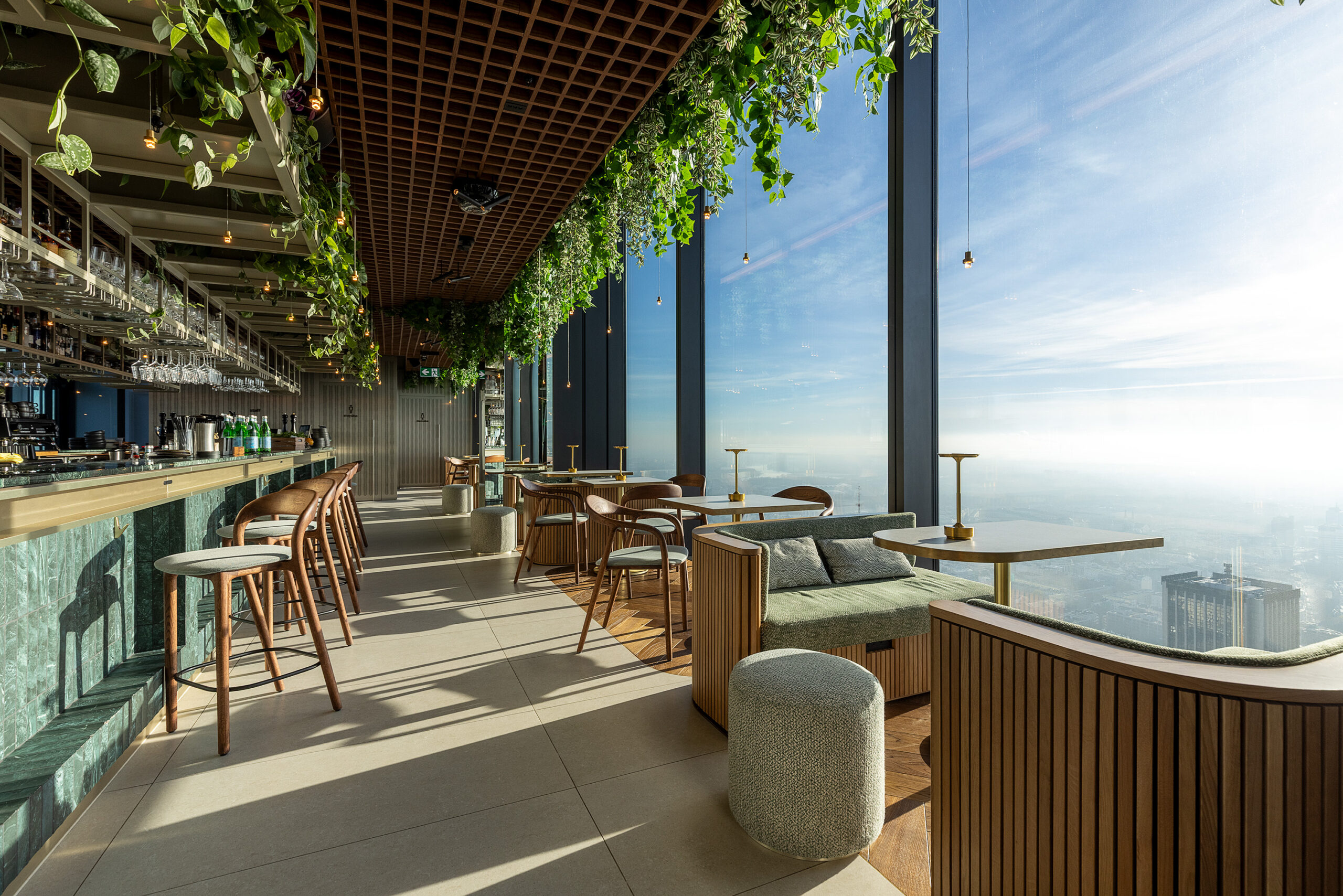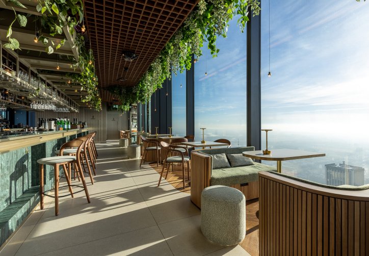 Goście mogą skorzystać z oferty koktajlowej i barowej w HighGarden Rooftop Lounge, a także z multimedialnej ekspozycji prezentującej historię Warszawy.