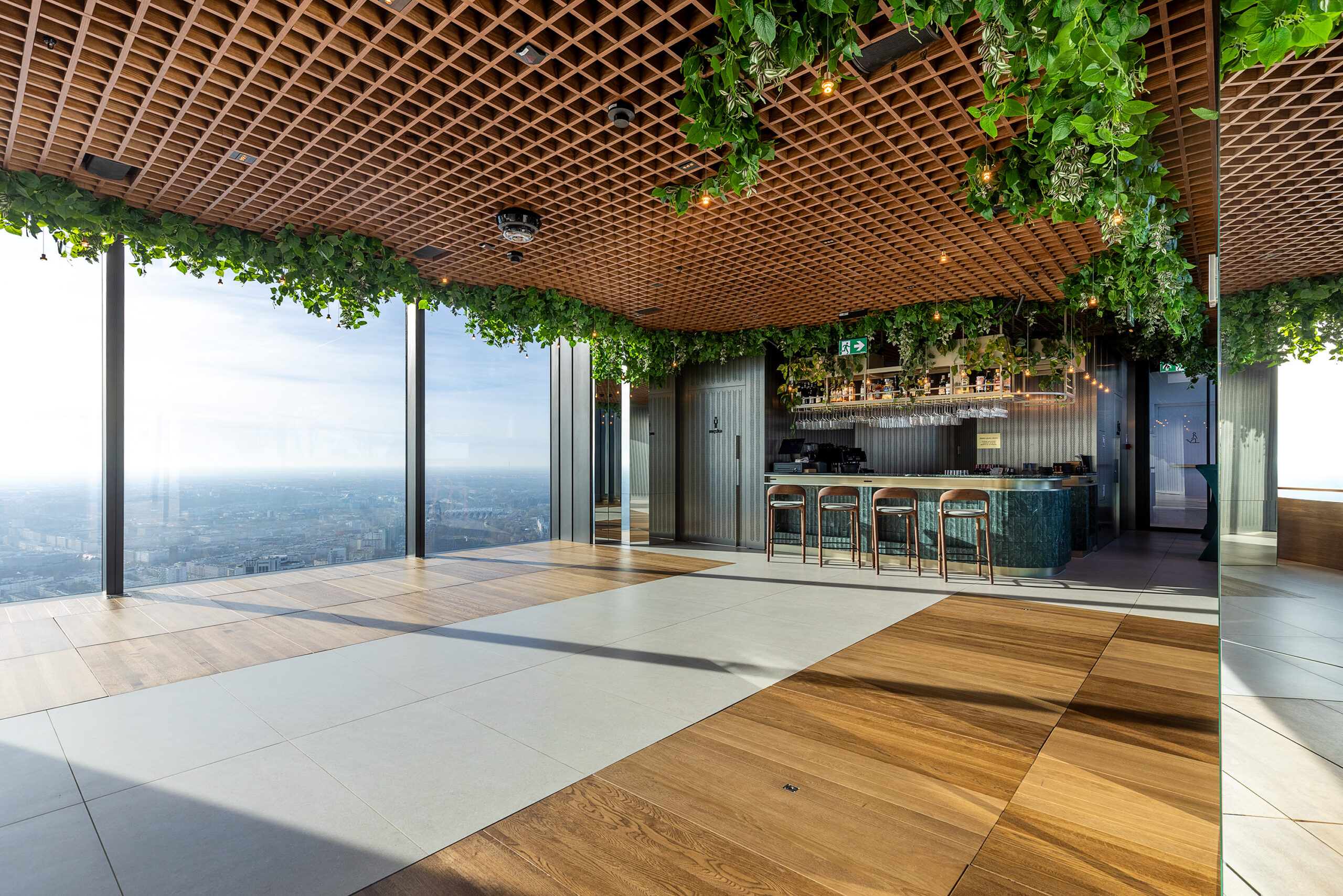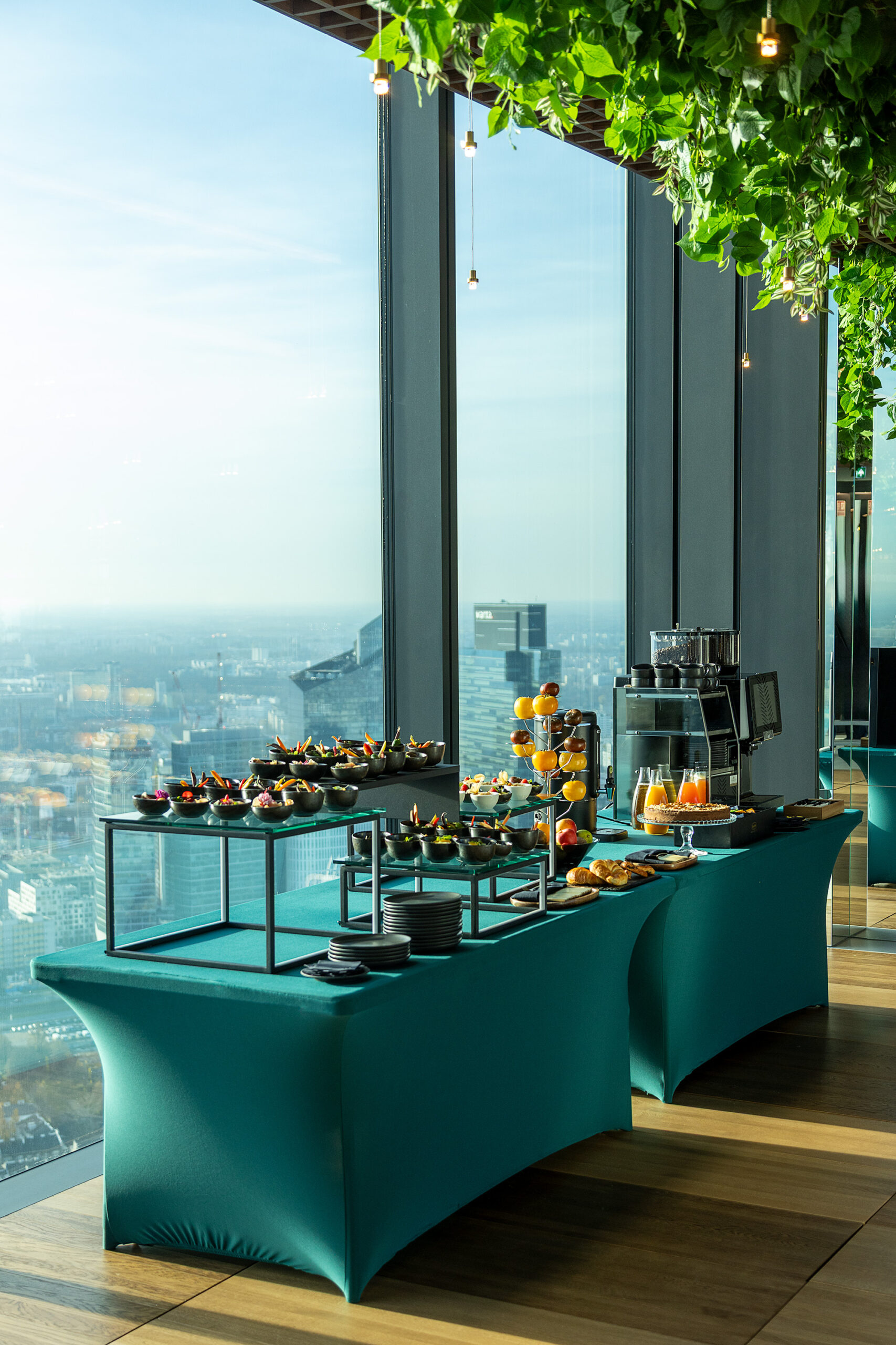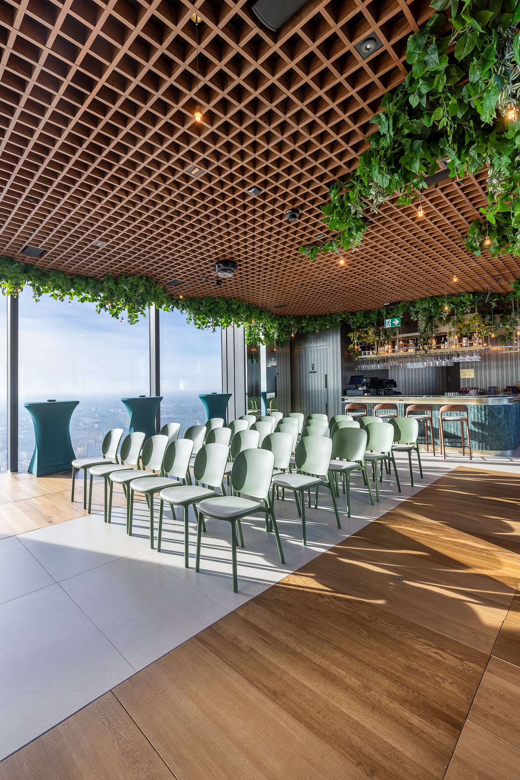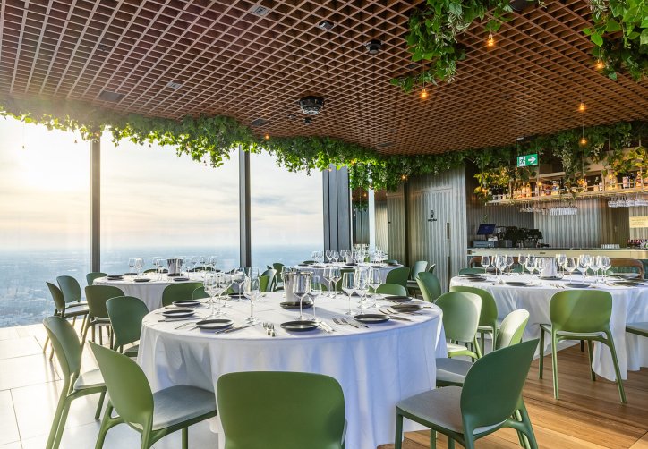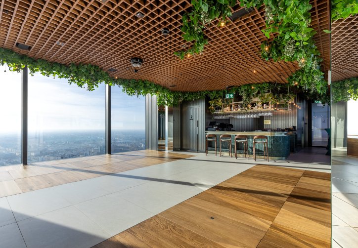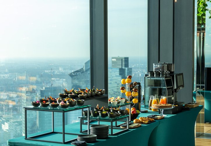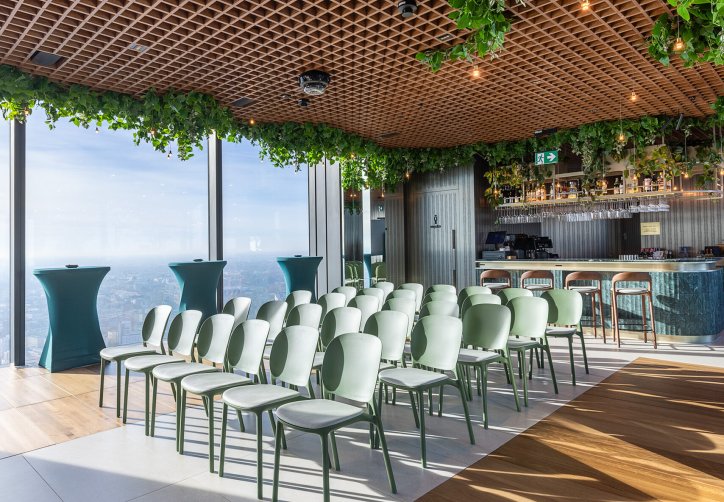 Dużym atutem jest taras widokowy na 53. piętrze, położony 230 metrów nad ziemią, oferujący pełną panoramę miasta. Przestrzeń umożliwia organizację różnorodnych wydarzeń - spotkań firmowych, integracji, premier produktów, kolacji biznesowych czy kameralnych uroczystości prywatnych. Połączenie widoków, nowoczesnej architektury oraz niepowtarzalnej atmosfery tworzy wyjątkowe tło dla każdego wydarzenia.