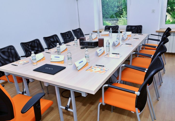 Sala Konferencyjna mieści w sobie do 12 osób. Sala wyposażona jest w komfortowe meble i niezbędne sprzęty. Obiekt zapewnia doskonałą atmosferę do pracy wraz z kompleksową obsługą techniczną.