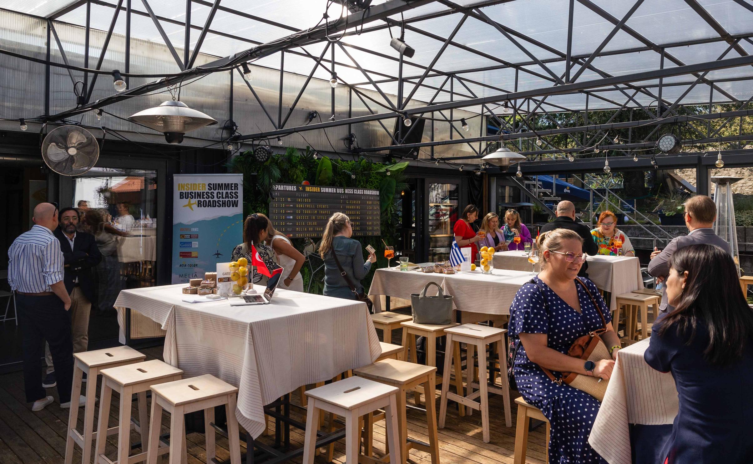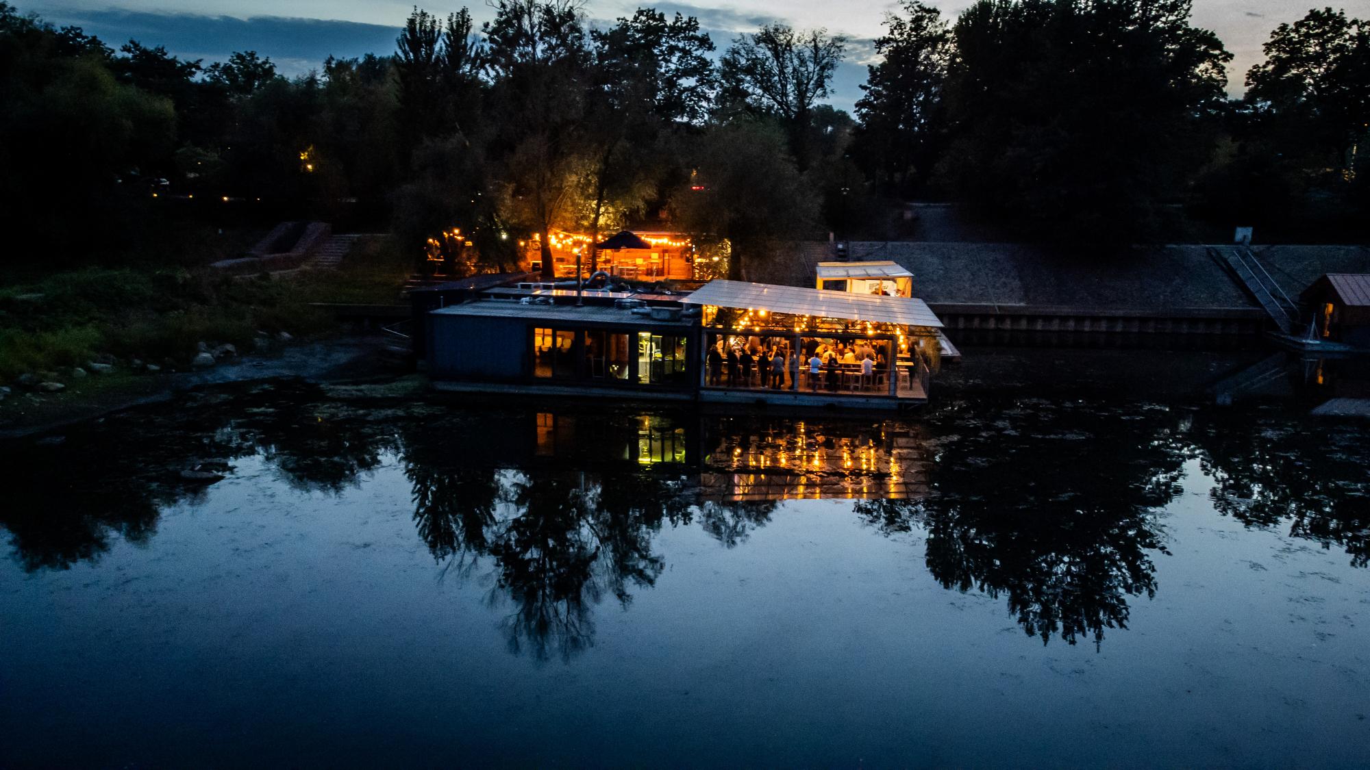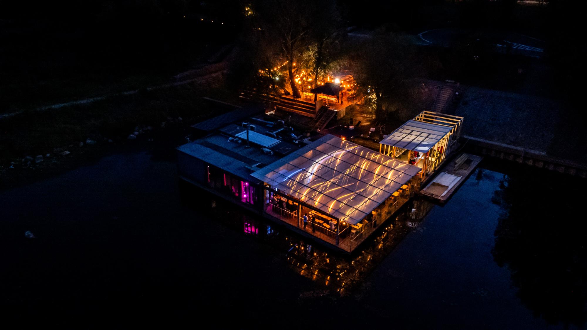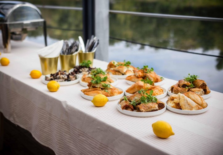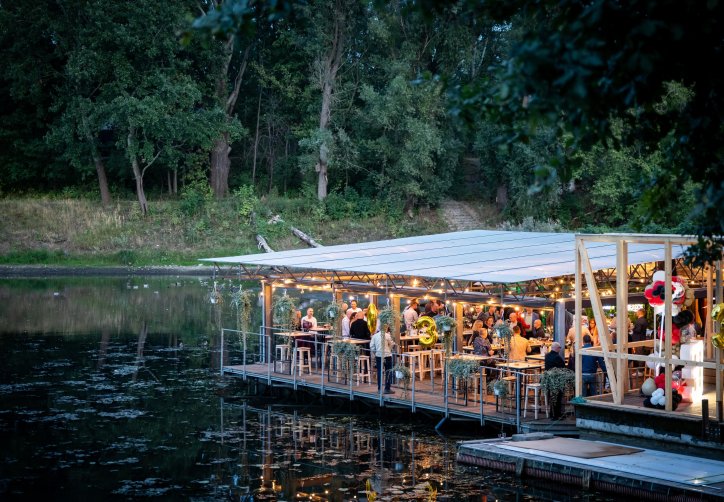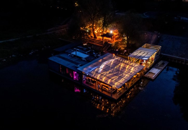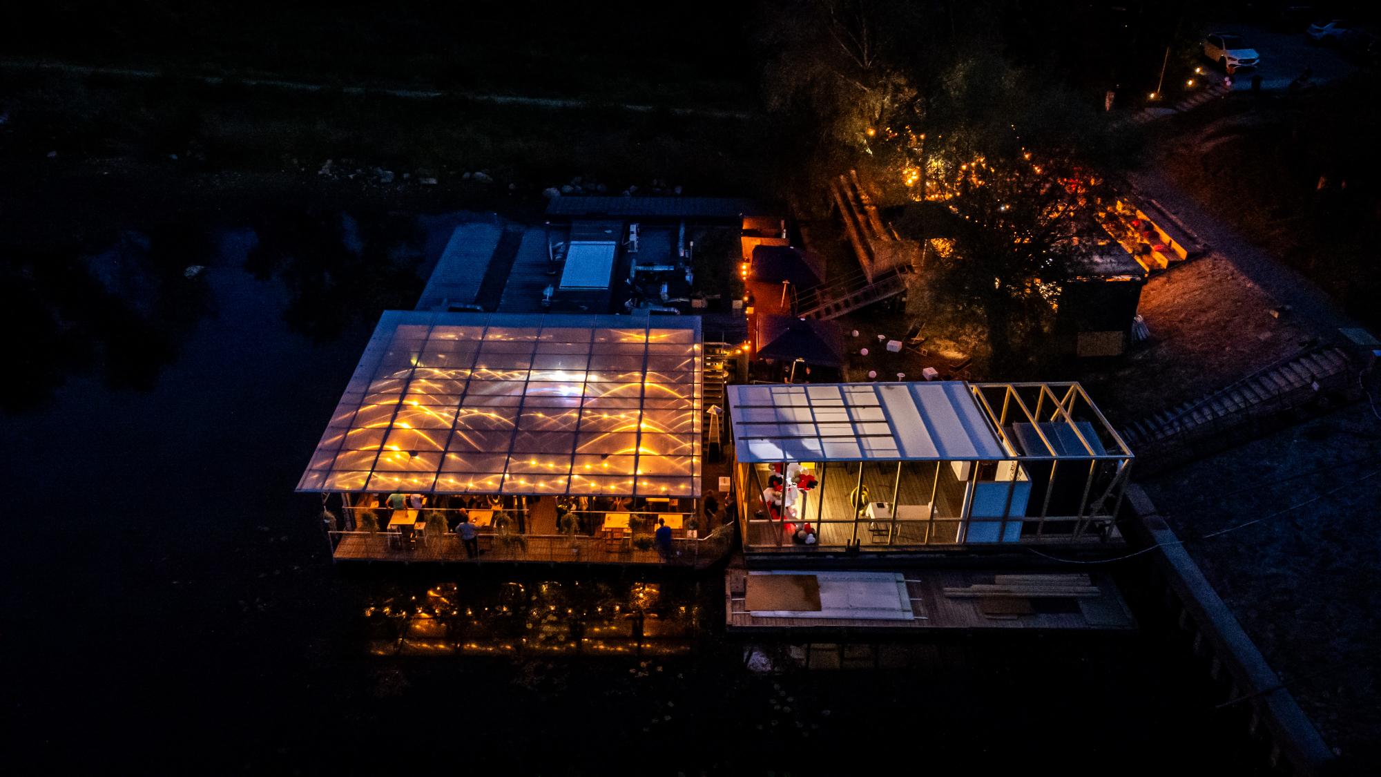 - przestronnego, zadaszonego tarasu (ok. 120 metrów kwadratowych), osłoniętego i ogrzewanego, idealnego nawet dla 100 osób w ustawieniu teatralnym,
