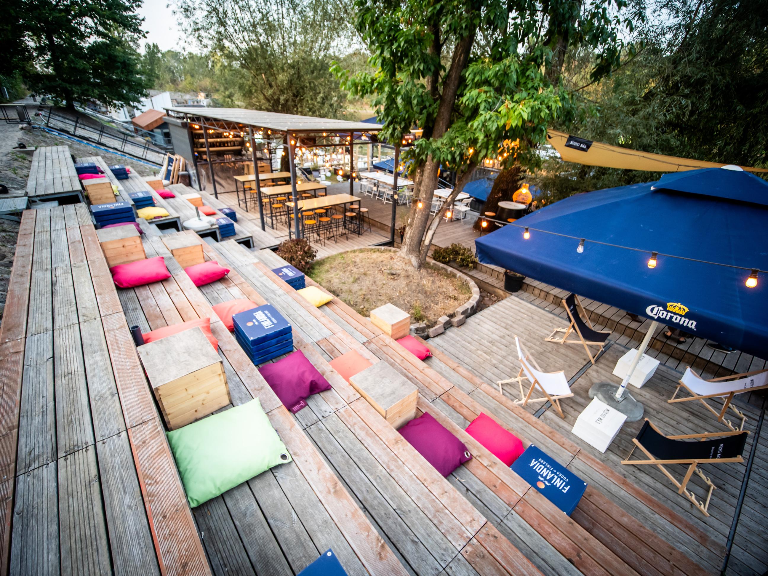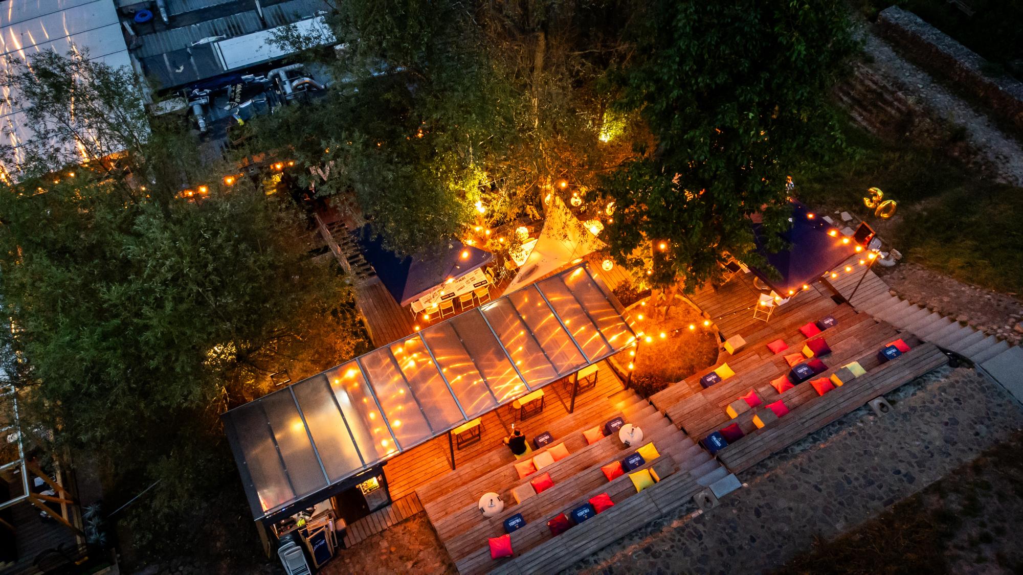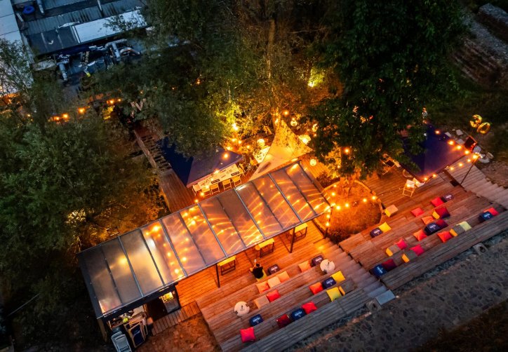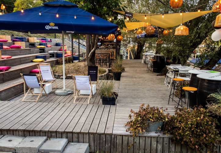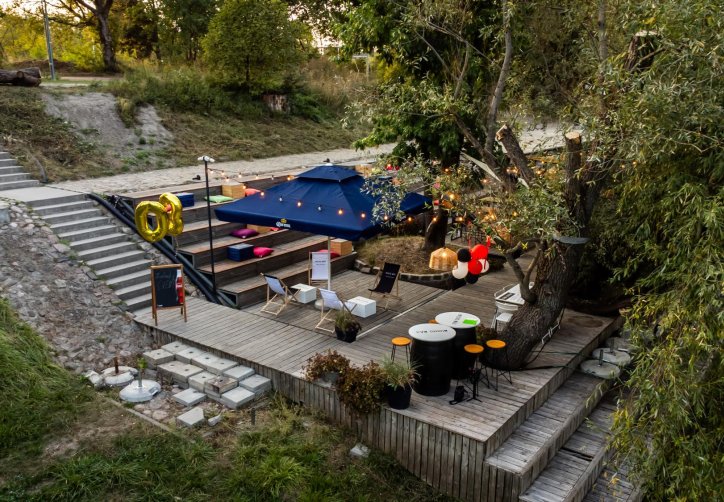 Tuż obok lokalu mieści się kameralna strefa plenerowa z barem i miękkim, nastrojowym światłem — idealna na swobodne spotkania, letnie wieczory z przyjaciółmi czy lekkie eventy pod gołym niebem. Goście mają również dostęp do bezpłatnego parkingu oddalonego o około 50 metrów, co pozwala wygodnie zaplanować wizytę.
