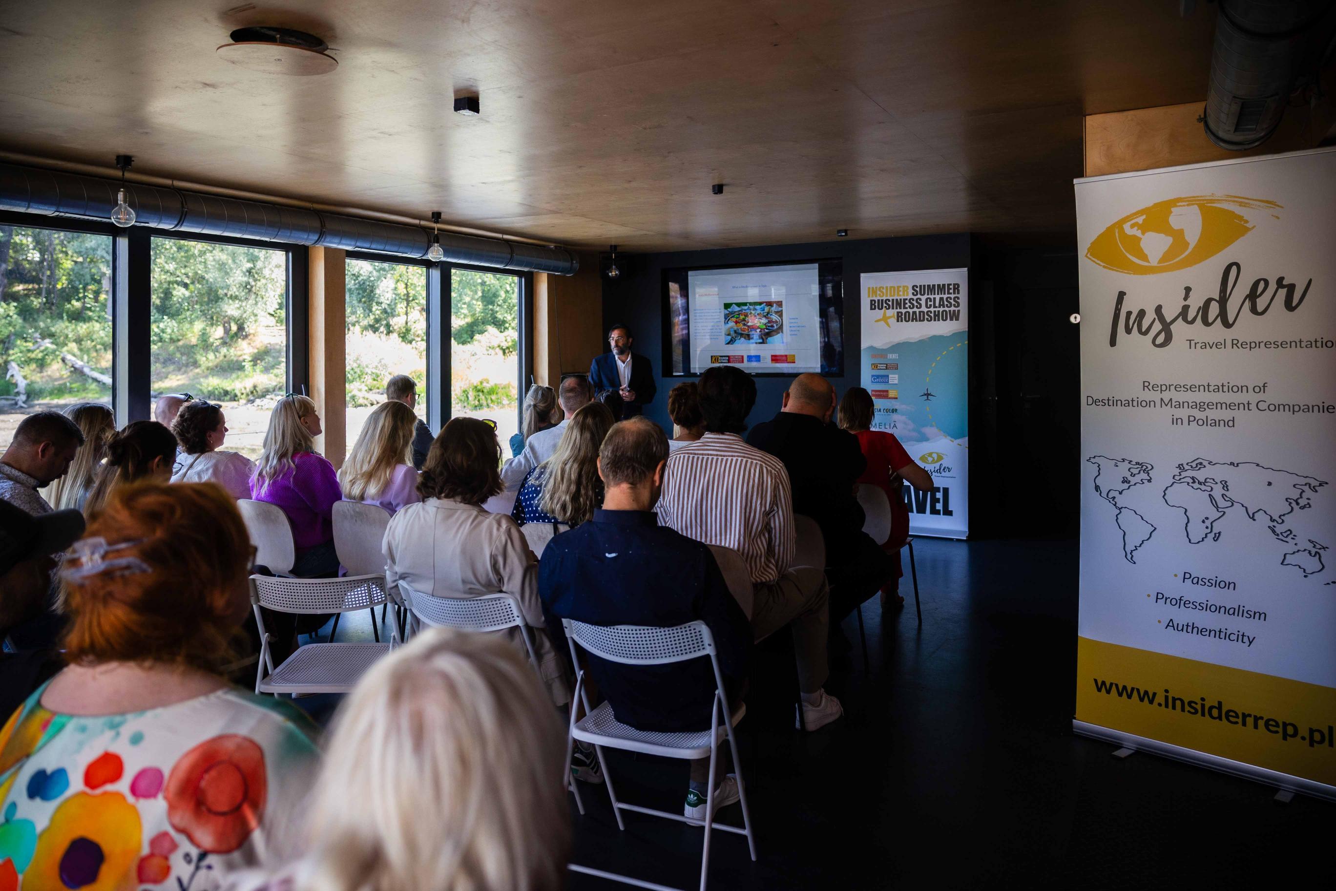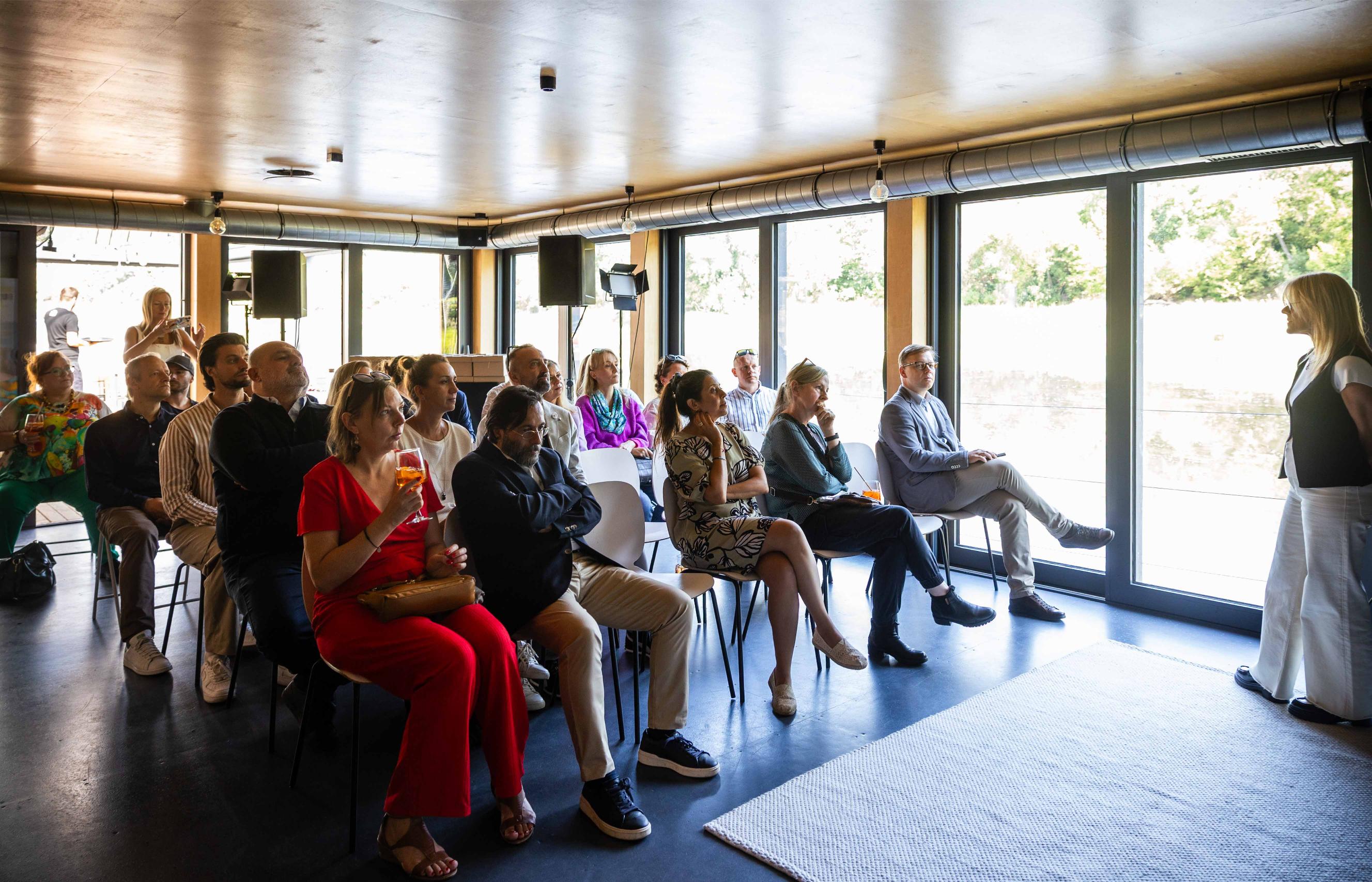 - komfortowej sali wewnętrznej wyposażonej w 75-calowy ekran, zaprojektowanej z myślą o szkoleniach i konferencjach dla ok. 40 uczestników.