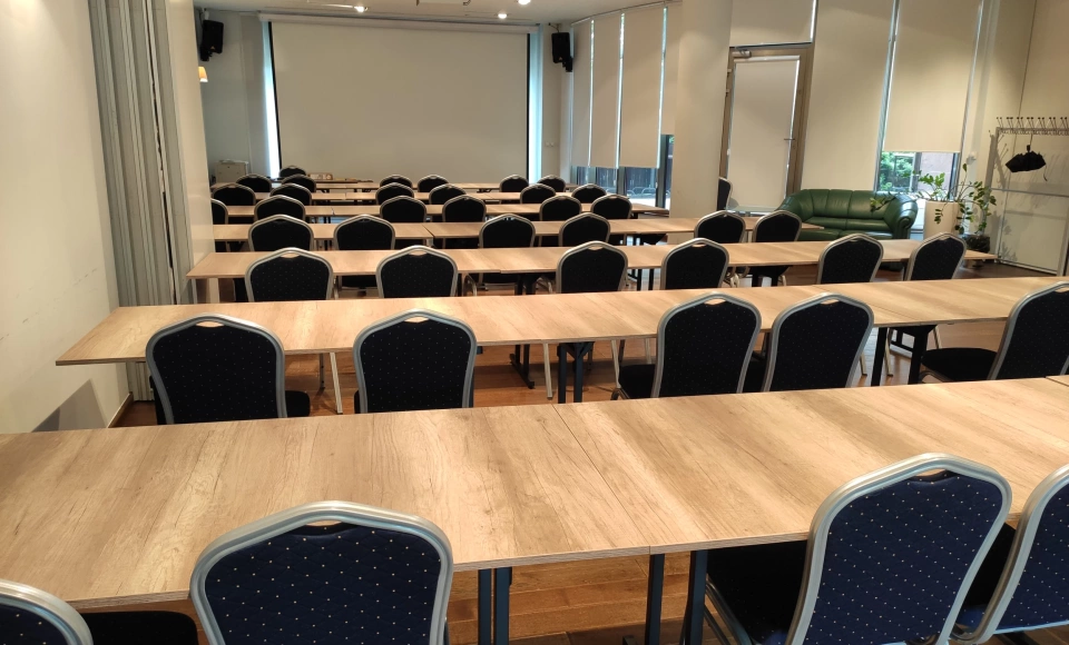 Jest ona w pełni klimatyzowana, co sprzyja dobremu samopoczuciu uczestników eventów. Dodatkowo przy wejściu do sali umieszczony został stojak informacyjny, który podlega wykorzystaniu zależnemu od życzenia organizatorów. Istnieje możliwość dostosowania rozmieszczenia stołów i krzeseł do ilości gości oraz specyfiki planowanych wydarzeń.