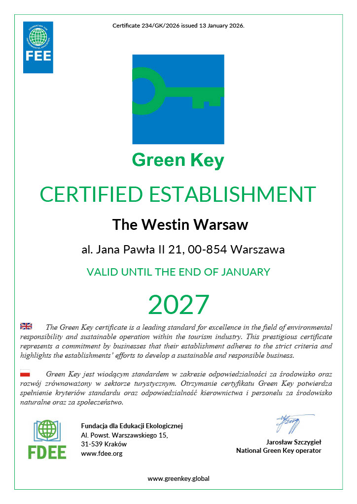 Hotel The Westin Warsaw to ekskluzywny pięciogwiazdkowy obiekt, który wyróżnia się swoim nowoczesnym designem i niepowtarzalnym luksusem. Znajdujący się przy alei Jana Pawła II charakterystyczny, dwudziestopiętrowy budynek stanowi prawdziwą perełkę architektoniczną w sercu stolicy Polski. Wieczorami, gdy panoramiczna winda rozświetla niebo, tworzy to niezwykłe widowisko, które mogą podziwiać goście i klienci biznesowi.