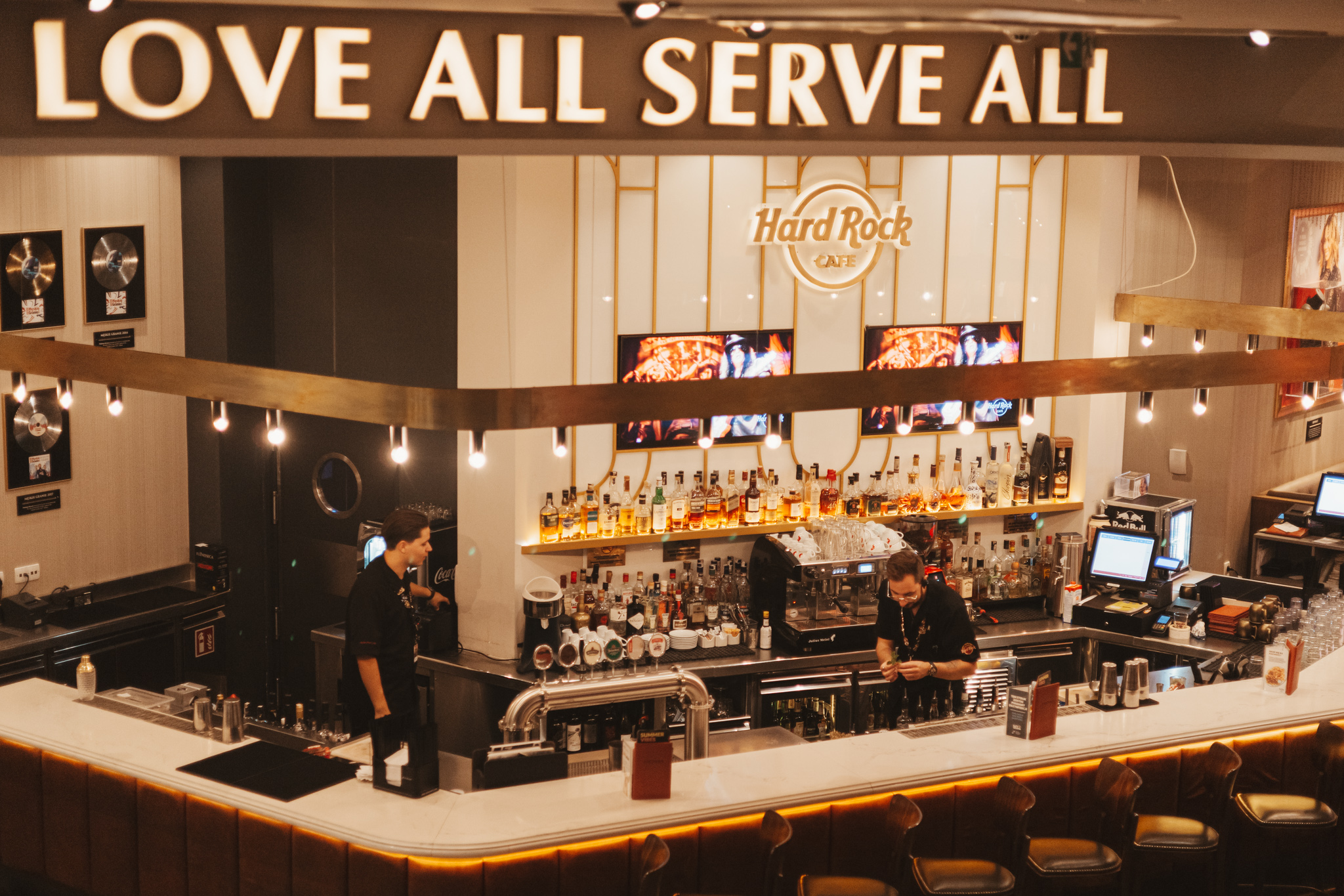 Ten nietuzinkowy obiekt oferuje dwupoziomową przestrzeń, która została urządzona w charakterystycznym dla marki Hard Rock Cafe stylu. Kameralna atmosfera i unikalna aranżacja sprawiają, że goście czują się jakby przenieśli się do świata muzycznych legend. Restauracja, zlokalizowana na dwóch poziomach, imponuje nowoczesnym designem i atmosferą, która łączy energię rockowej sceny z elegancją secesyjnej architektury.