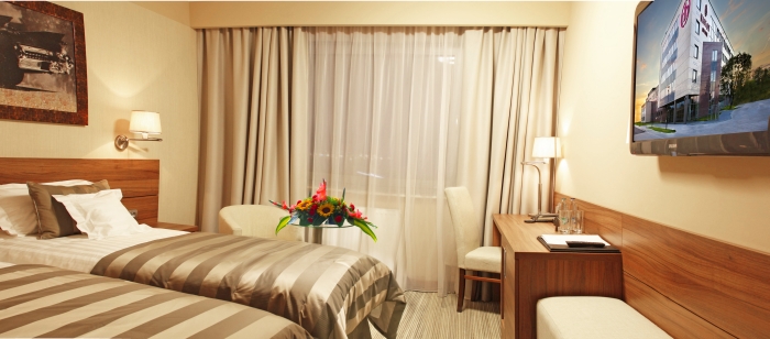 Zdecydowanie tak. Hotel oferuje 111 dźwiękoszczelnych, klimatyzowanych pokoi z pełnym wyposażeniem – od sejfu na laptopa po minibar i zestaw do parzenia kawy i herbaty. Pokoje typu Junior Suite zapewniają dodatkowy komfort: szlafroki, prasę codzienną, fotele do masażu i dostęp do usług concierge oraz room service.