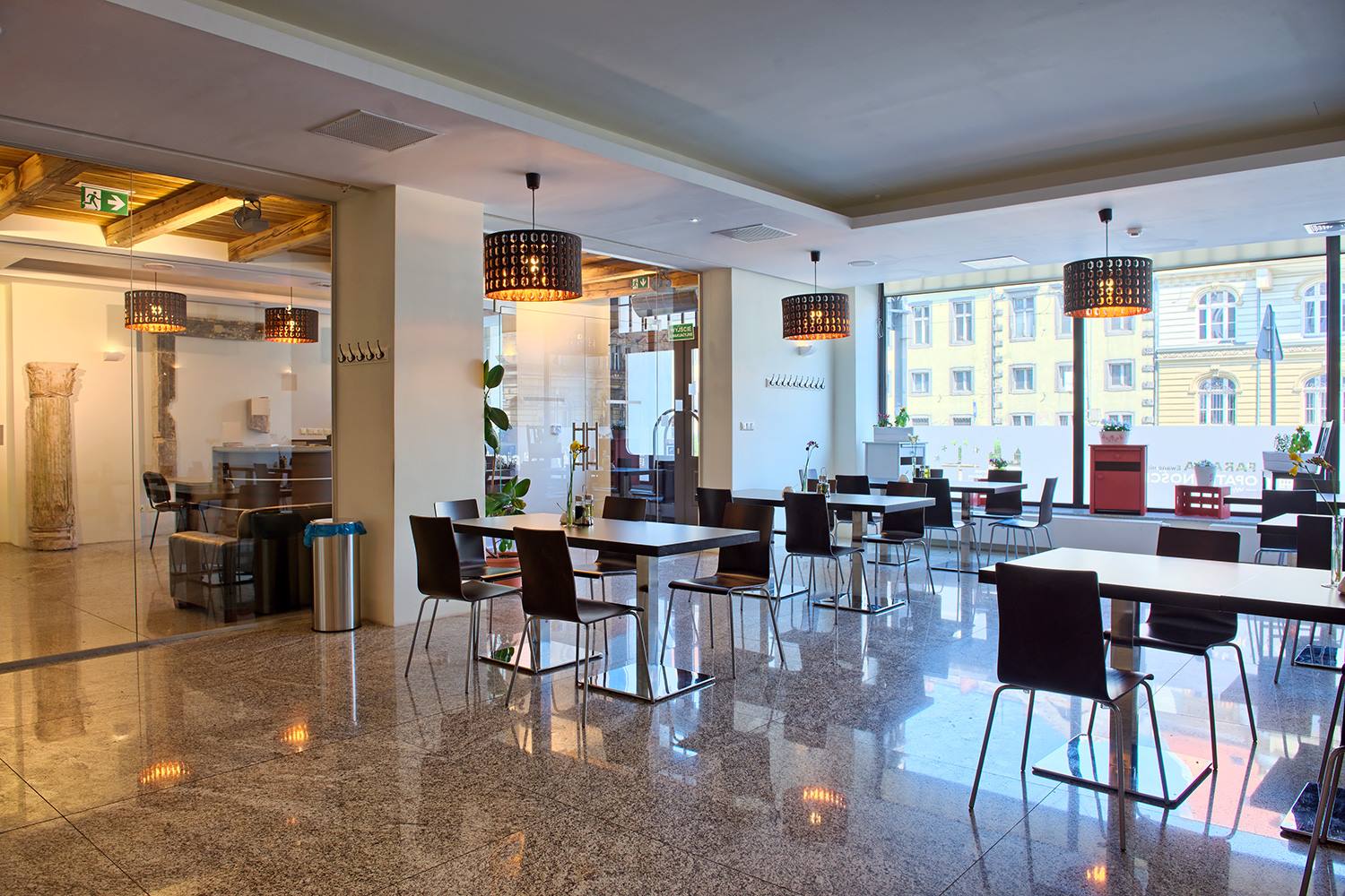Dla komfortu gości, dostęp do trzeciego piętra zapewnia nowoczesna winda, eliminując konieczność korzystania ze schodów. Dodatkowym atutem jest taras przylegający do sali konferencyjnej, z którego roztacza się malowniczy widok na dachy i wieże Starego Miasta. Taras jest idealnym miejscem na przerwy kawowe, networking oraz relaks, oferując niezapomniane wrażenia w inspirującym otoczeniu.