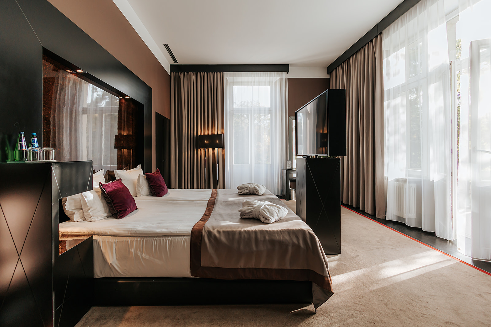 Wszystkie pokoje w Platinum Palace Boutique Hotel & SPA wyróżniają się nowoczesną stylizacją, która harmonizuje z niepowtarzalnym urokiem tego miejsca. Wykończenia wnętrz zostały starannie zaprojektowane, z dbałością o najmniejsze detale, aby zapewnić gościom wyjątkowy komfort i niezapomniane wrażenia podczas pobytu. Z okien każdego pokoju rozciągają się zachwycające widoki, które z pewnością zachwycą nawet najbardziej wymagających gości.