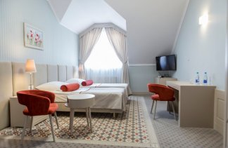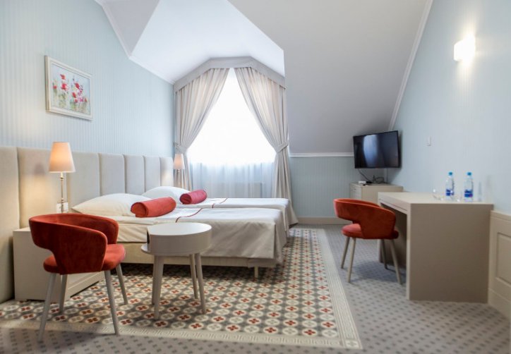Wnętrza wszystkich pokoi charakteryzują się jasnymi i ciepłymi kolorami, które sprawiają, że goście czują się tu bardzo domowo i komfortowo. Dodatki zostały starannie dobrane, a każdy element pieczołowicie dopracowany. Każde z pomieszczeń zostało wyposażone w telewizor, telefon oraz stylowe meble i wygodne łóżka. W cenę noclegu wliczone jest śniadanie. Na uwagę zasługuje również fachowa i zawsze chętna do pomocy obsługa, która postara się zaspokoić wymagania nawet najbardziej wymagających gości.
