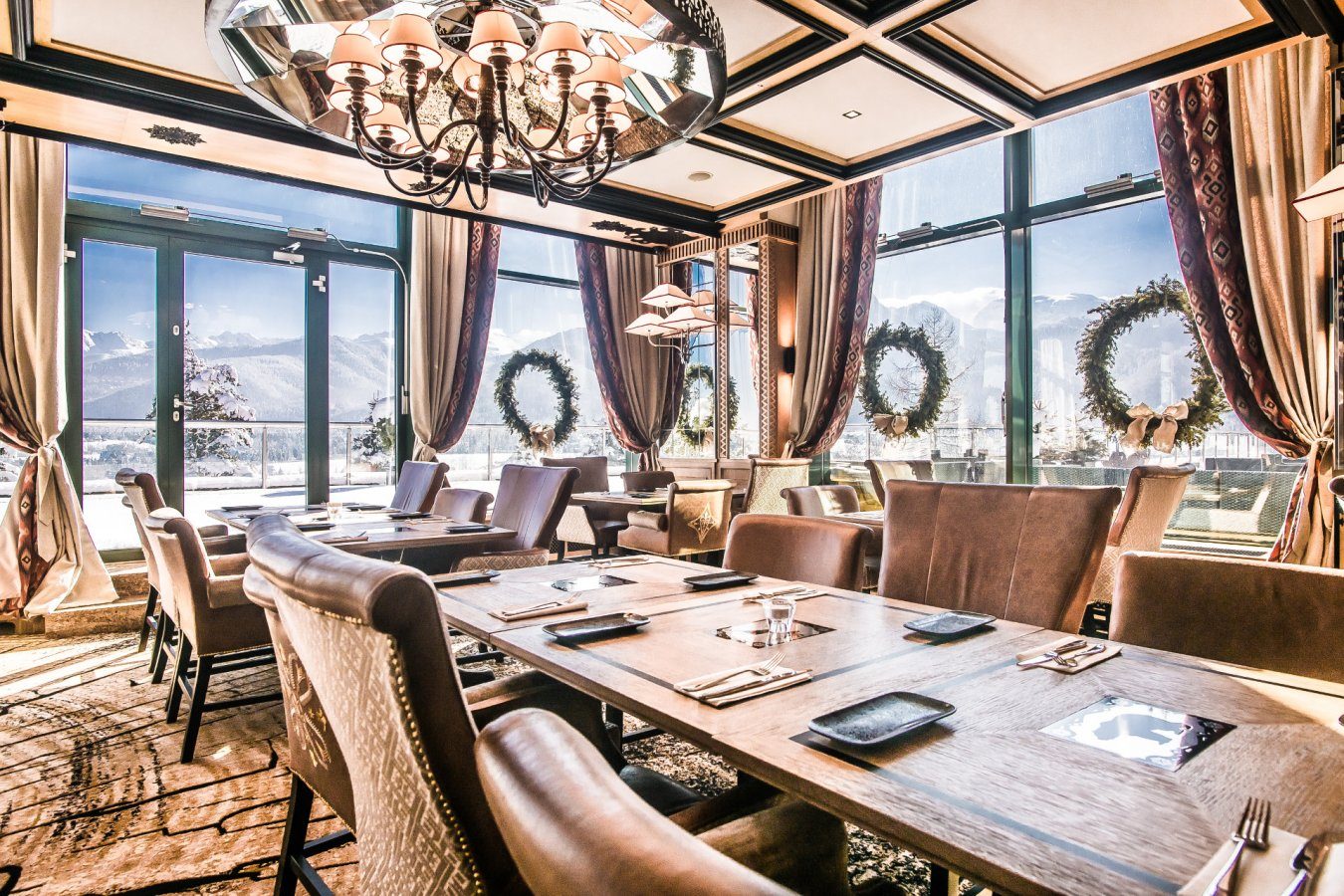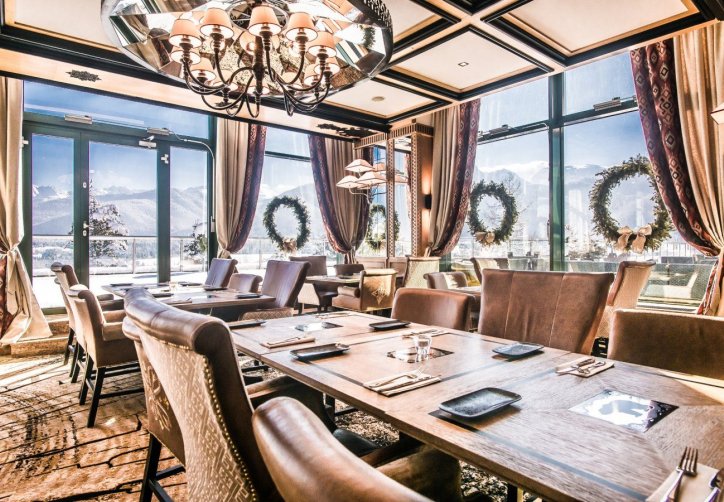 Restauracja Zakopane serwuje codzienne śniadania i tematyczne obiadokolacje w przestronnej, przeszklonej sali z widokiem na Tatry.