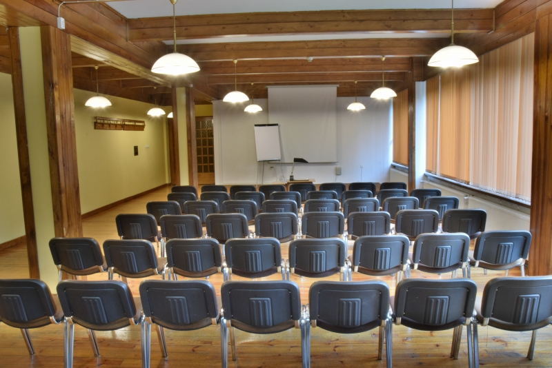 im. Zofii Stryjeńskiej - powierzchnia: 40m2, długość: 8m, szerokość: 5m, wysokość: 3,30,piętro pierwsze(schody) Naturalne światło . Nagłośnianie mobilne projektor + ekran ( 244 x 244), flipchart, mównica, stół prezydialny, WiFi, sygnał TV. Wystrój retro - 70’, podłogi wykładzina. Wspólne foyer konferencyjny. Przyległa sala im. Karola Stryjeńskiego ( drzwi wewnętrzne).Idealna na mniejsze szkolenia w układzie szkolnym lub kameralne imprezy rodzinne.