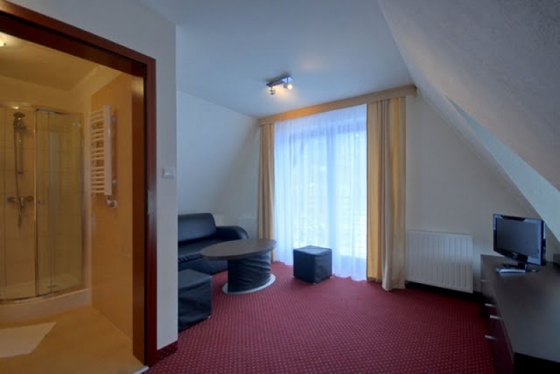 Obiekt oferuje również luksusowe apartamenty o podwyższonym standardzie, idealne dla osób poszukujących wyjątkowego komfortu. Każde z pomieszczeń wyposażone jest w łazienkę, telewizor oraz dostęp do internetu, co zapewnia gościom komfort i wygodę podczas pobytu.
