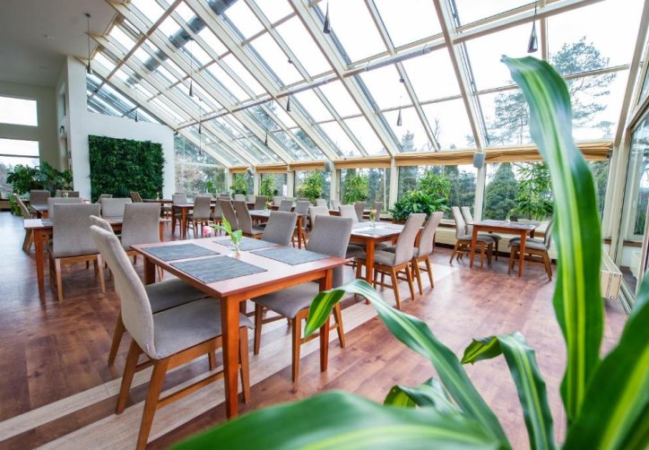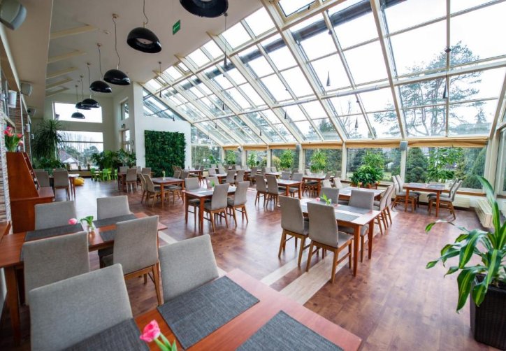 - Hotel Ostaniec*** oferuje restaurację uzupełnioną o ogród zimowy, salę kominkową oraz tarasy, które stanowią atrakcyjną przestrzeń do organizacji spotkań w mniej formalnej atmosferze.