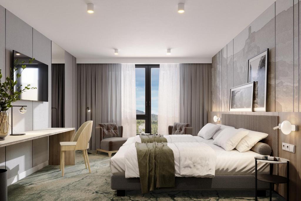 Całość została zaprojektowana tak, aby obsługiwać zarówno pobyty indywidualne, jak i duże przedsięwzięcia biznesowe oraz wydarzenia outdoorowe. Resort oferuje ponad 800 miejsc noclegowych oraz zaplecze konferencyjne składające się z 20 sal o zróżnicowanej powierzchni i konfiguracji, co umożliwia realizację konferencji, targów, kongresów czy szkoleń.