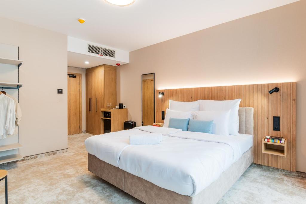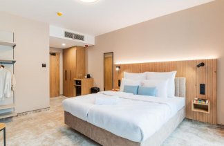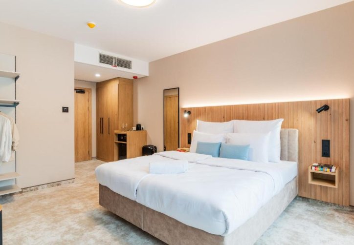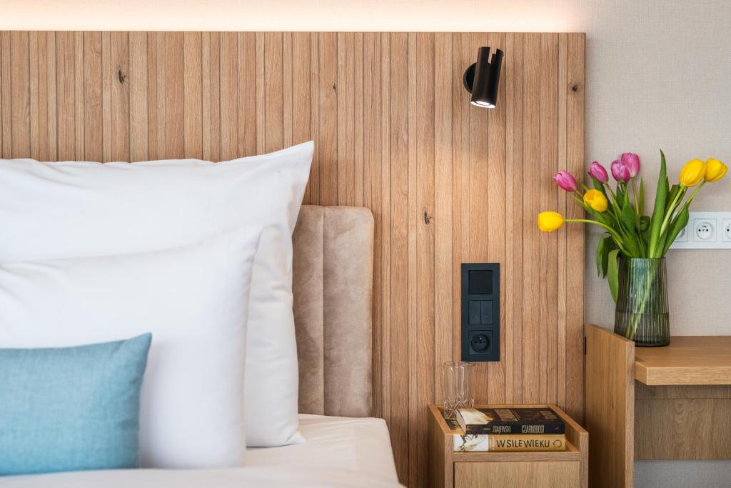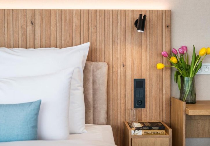 Hotel oferuje różne konfiguracje pokoi, od klasycznych Double i Twin, przez przestronniejsze pokoje typu Family, aż po apartamenty dla gości oczekujących większej prywatności lub podróżujących w dłuższym pobycie. Elastyczne układy łóżek ułatwiają także organizację pobytów grupowych i firmowych.