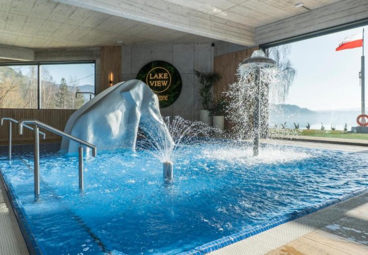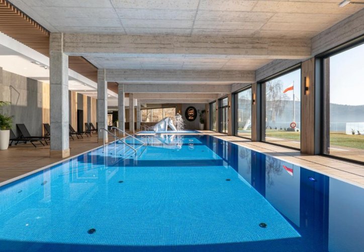 Goście mają do dyspozycji basen wewnętrzny z panoramicznym widokiem na jezioro, jacuzzi, saunę fińską i parową, grotę solną oraz tężnię. Całość uzupełnia strefa chillout, w której łatwo zwolnić tempo po dniu pełnym spotkań lub aktywności.