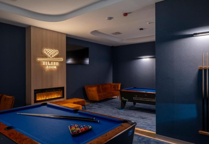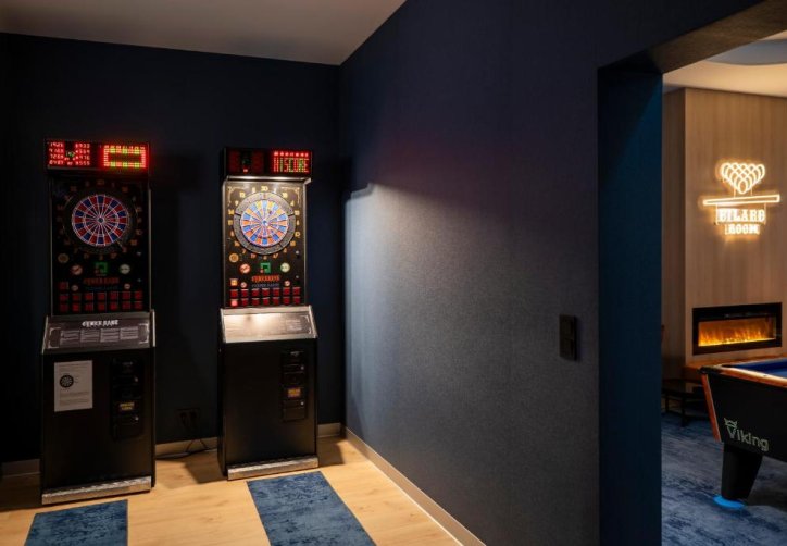 Na terenie resortu znajduje się również sala fitness, przestrzeń dla dzieci z nowoczesną salą zabaw i animacjami oraz strefy wspólne sprzyjające nieformalnym spotkaniom.
